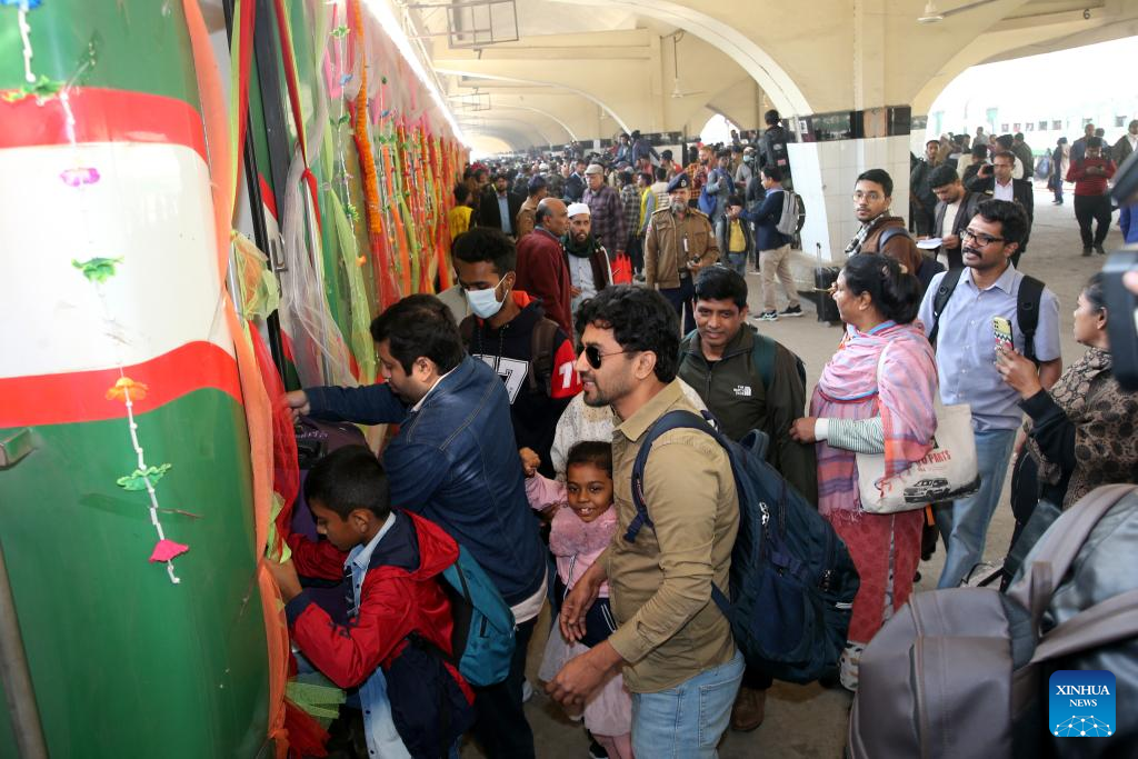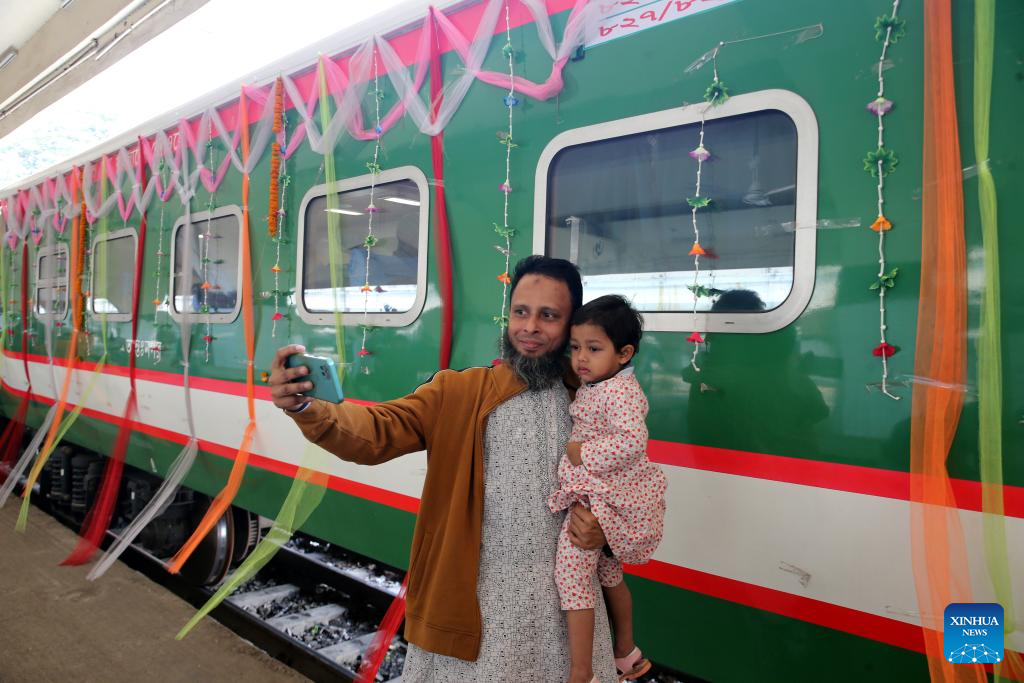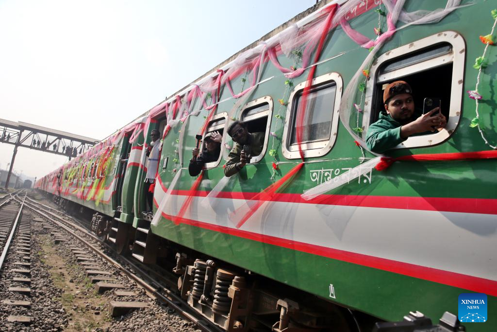 Daca, 24 dez (Xinhua) -- Com o primeiro trem enfeitado com balões e fitas coloridas chegando à estação de Daca, o maior projeto ferroviário de Bangladesh, Projeto de Ligação Ferroviária da Ponte Padma (PBRLP, na sigla em inglês), abriu oficialmente sua linha completa para o tráfego na terça-feira.