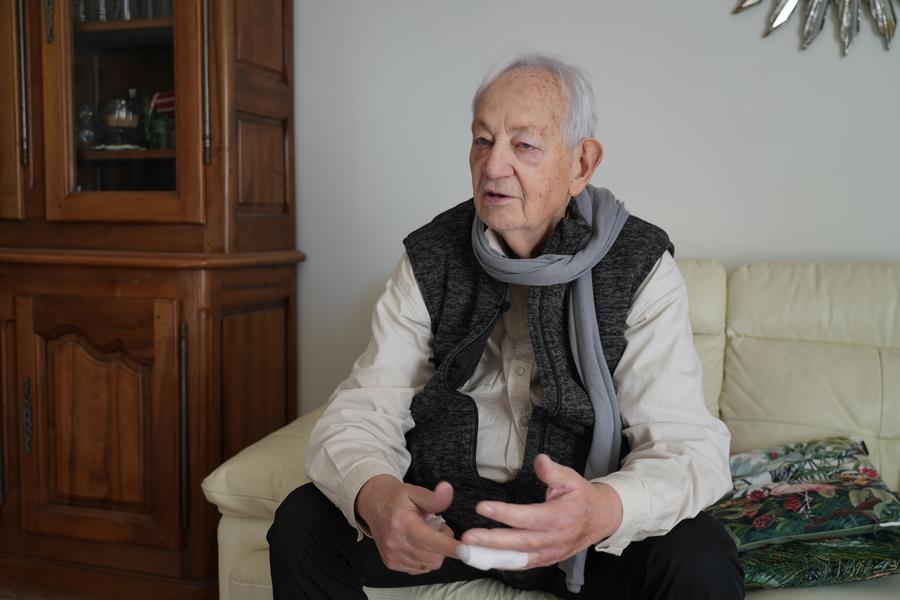 Christian Luciani, um veterano do teatro francês de 83 anos, fala durante uma entrevista à Xinhua em Lourmarin, França, em 21 de dezembro de 2024. (Xinhua/Sun Xinjing)
