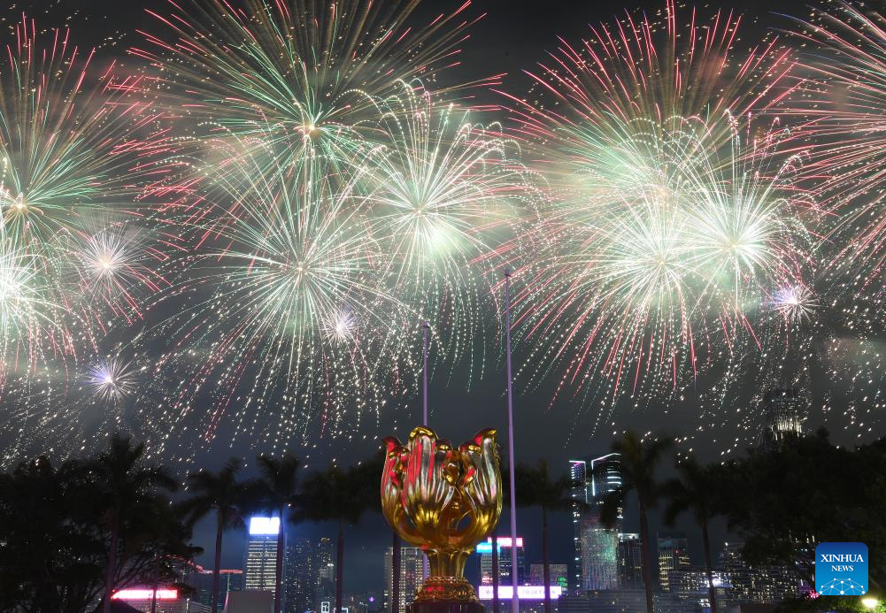 Fogos de artifício iluminam o ceú de Hong Kong na celebração da Festa da Primavera-Xinhua