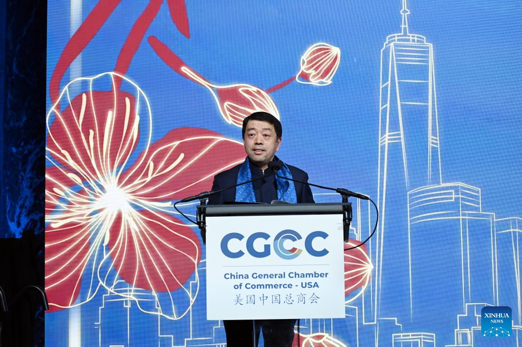 Com o tema "Construindo Conexões e Criando Oportunidades", a comemoração, que reuniu 300 executivos seniores, autoridades governamentais e líderes inovadores, comemorou duas décadas do compromisso inabalável da CGCC em expandir a cooperação e as oportunidades entre as comunidades empresariais dos EUA e da China. (Xinhua/Li Rui)