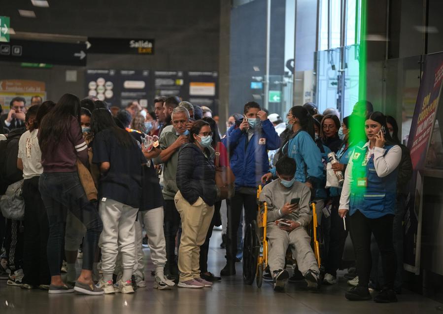 Migrantes deportados dos Estados Unidos aguardam no portão de desembarque internacional do Aeroporto Internacional El Dorado em Bogotá, Colômbia, em 28 de janeiro de 2025. (Foto por Andres Moreno/Xinhua)