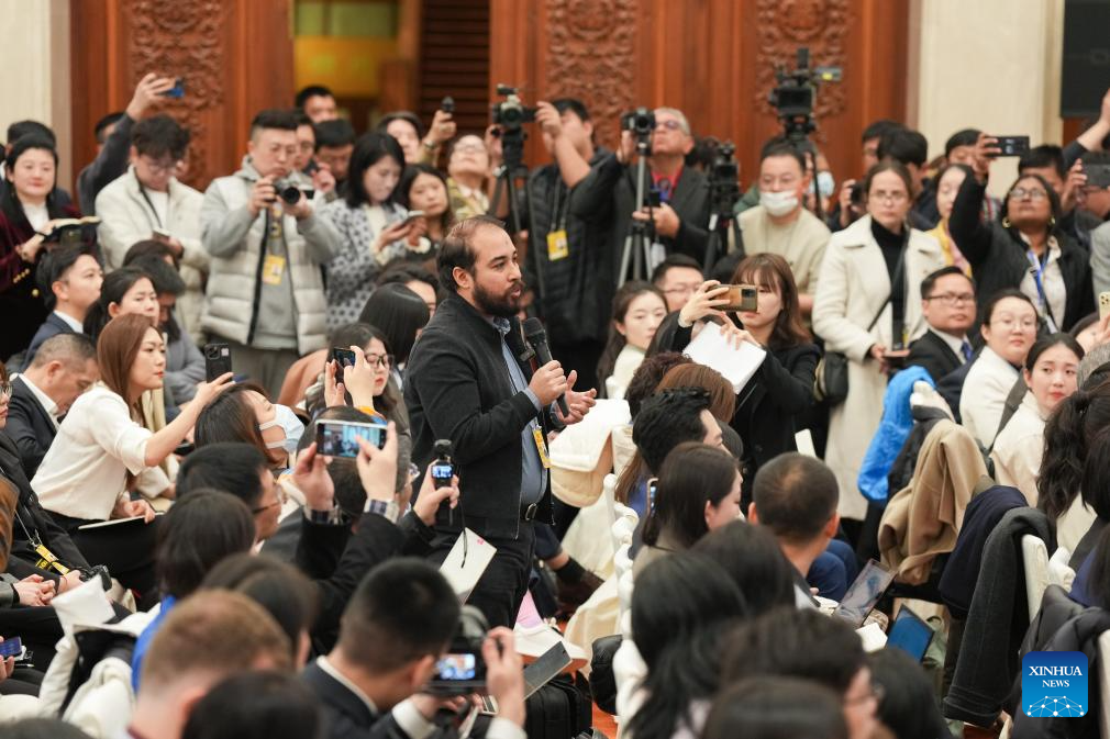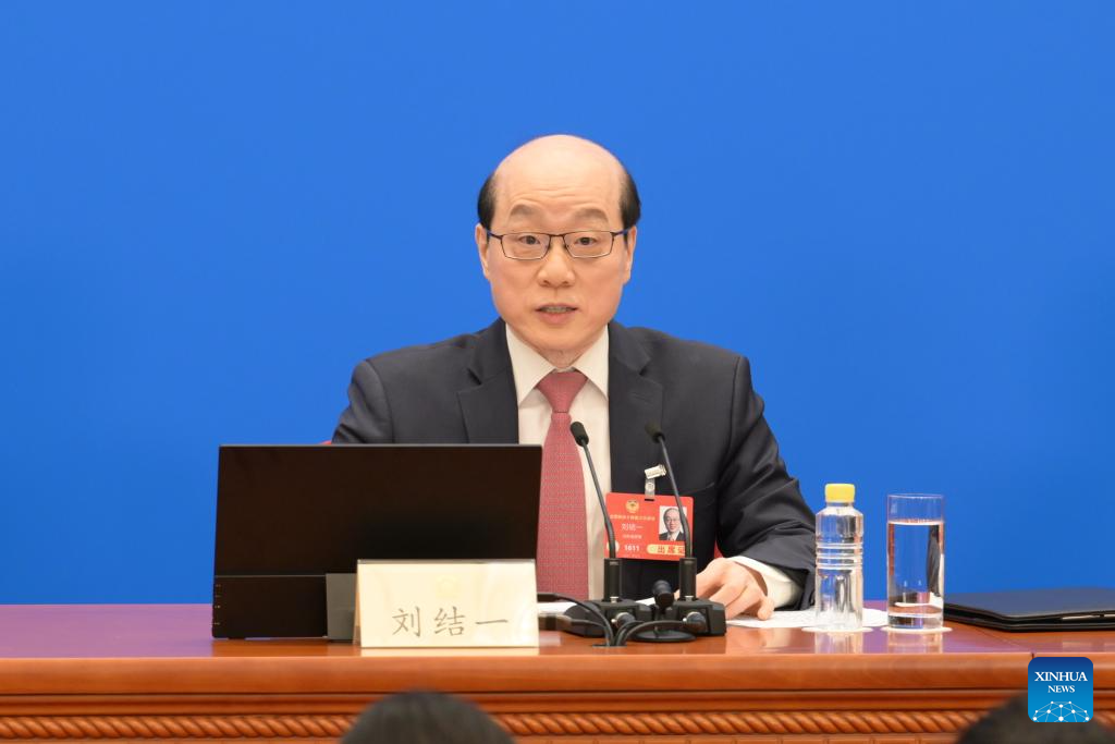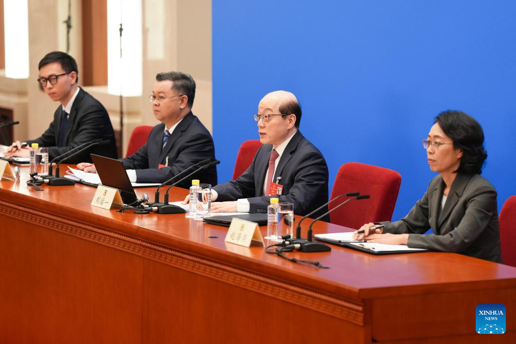 Liu Jieyi, porta-voz da terceira sessão do 14º Comitê Nacional da CCPPC, informou a imprensa sobre a sessão.
