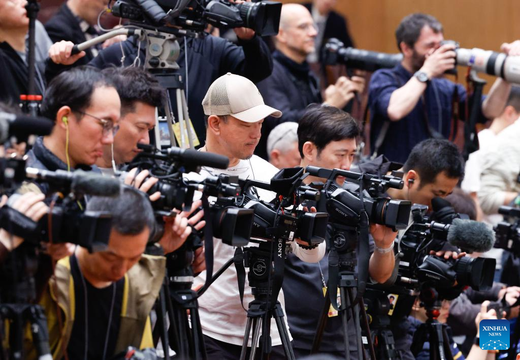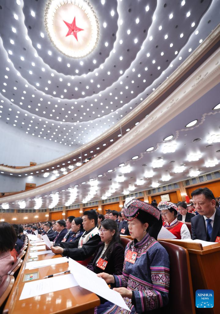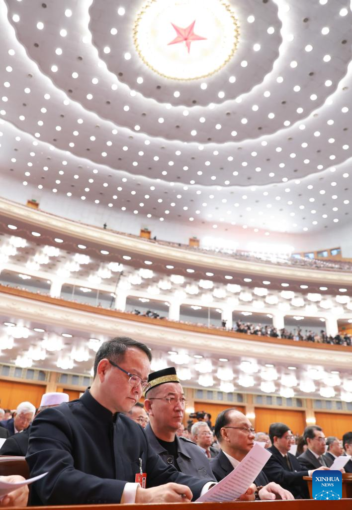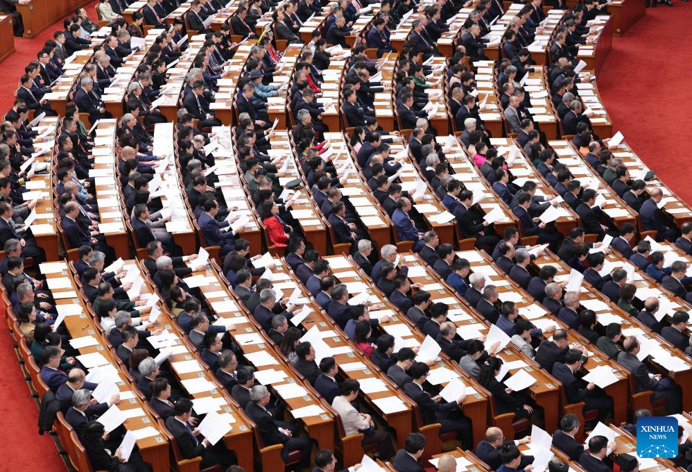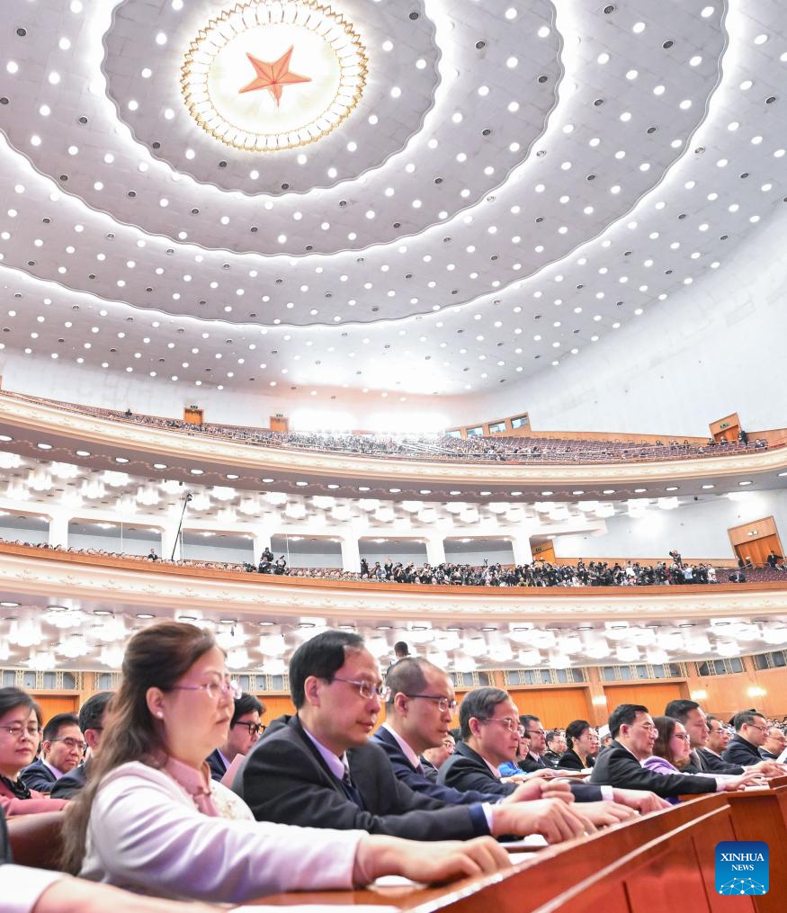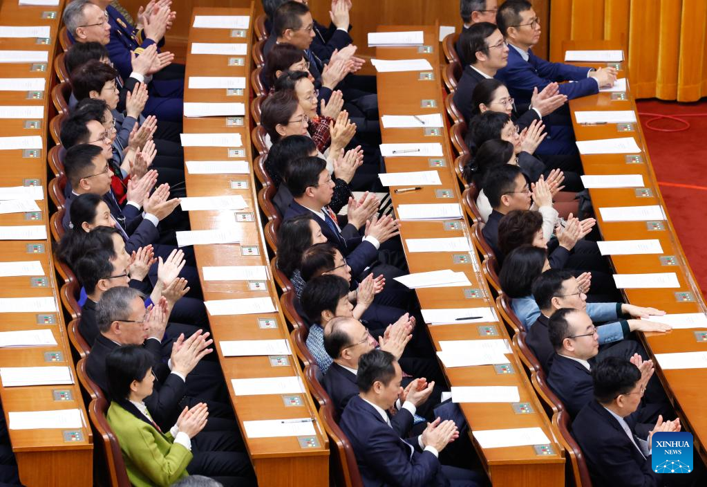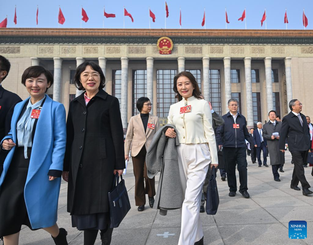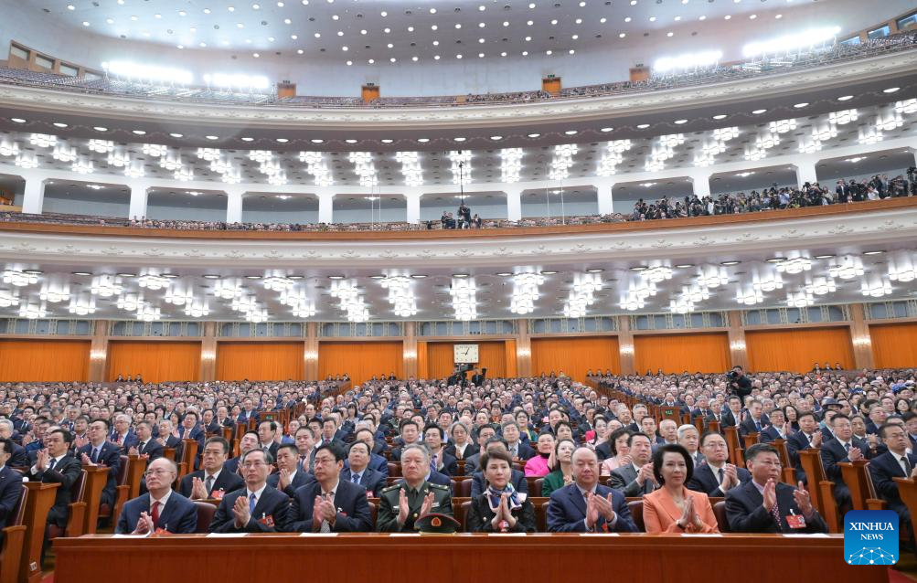 O presidente chinês, Xi Jinping, e outros líderes, incluindo Li Qiang, Cai Qi, Ding Xuexiang, Li Xi e Han Zheng, participaram da reunião de encerramento da terceira sessão do 14º Comitê Nacional da Conferência Consultiva Política do Povo Chinês (CCPPC), realizada no Grande Palácio do Povo, em Beijing.
