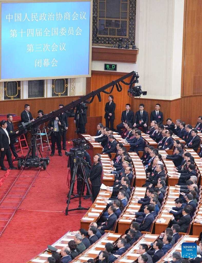 Beijing, 11 mar (Xinhua) -- O principal órgão consultivo político da China concluiu nesta segunda-feira sua sessão anual, pedindo aos conselheiros políticos que façam novas e maiores contribuições para impulsionar a modernização chinesa.