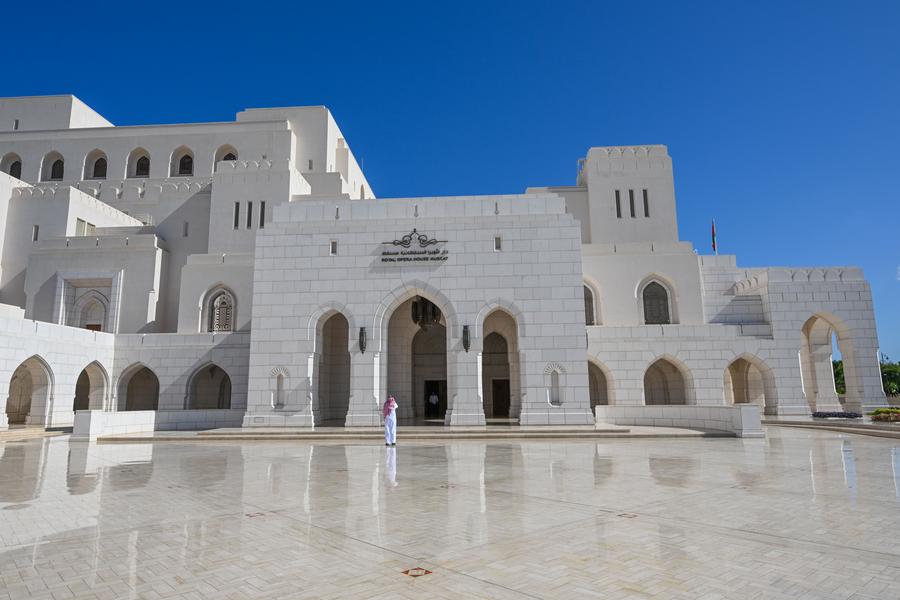 Foto tirada em 11 de janeiro de 2025 mostra uma vista da Casa Real de Ópera de Mascate em Mascate, Omã. (Xinhua/Liu Lei)