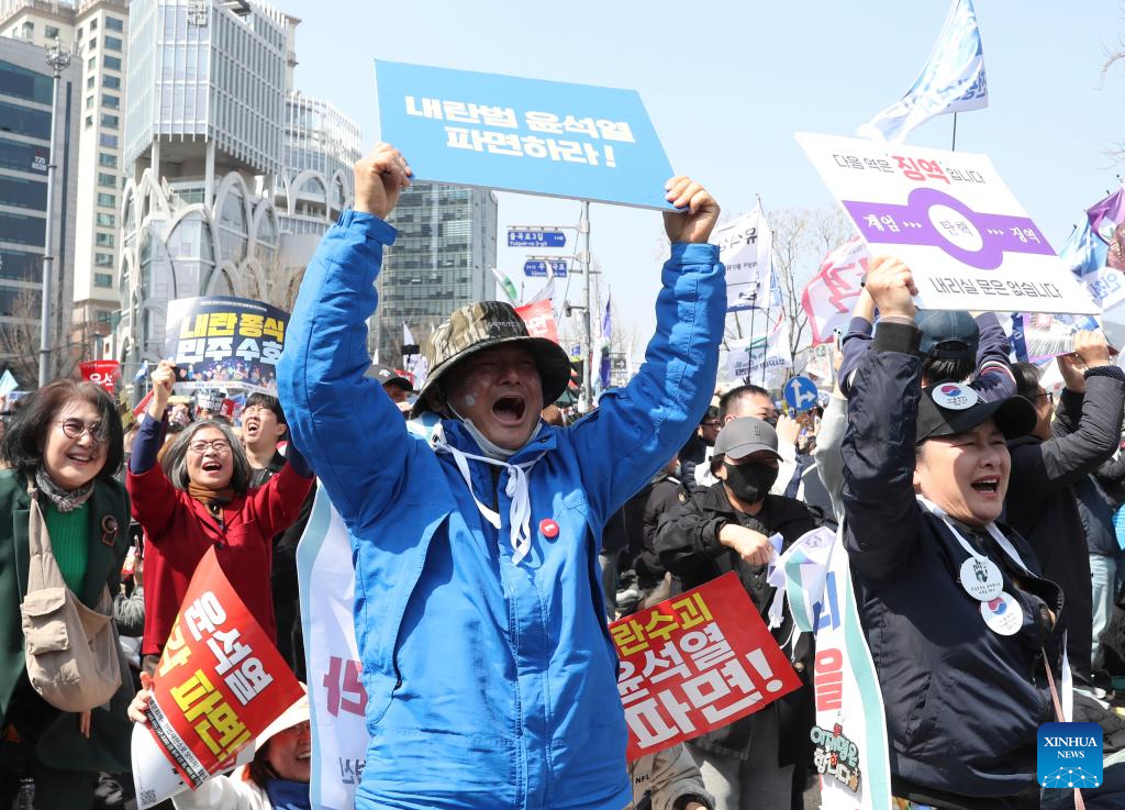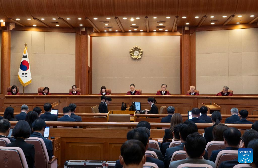 Seul, 4 abr (Xinhua) -- O presidente sul-coreano Yoon Suk-yeol foi afastado do cargo na sexta-feira, quando o tribunal constitucional confirmou uma moção do parlamento para impeachment de Yoon por sua curta imposição da lei marcial em dezembro passado.