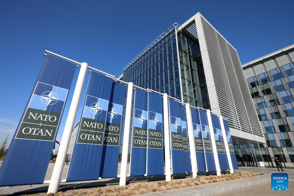 Foto tirada no dia 4 de abril de 2025 mostra vista da sede da Organização do Tratado do Atlântico Norte (OTAN) em Bruxelas, Bélgica. (Xinhua/Zhao Dingzhe)