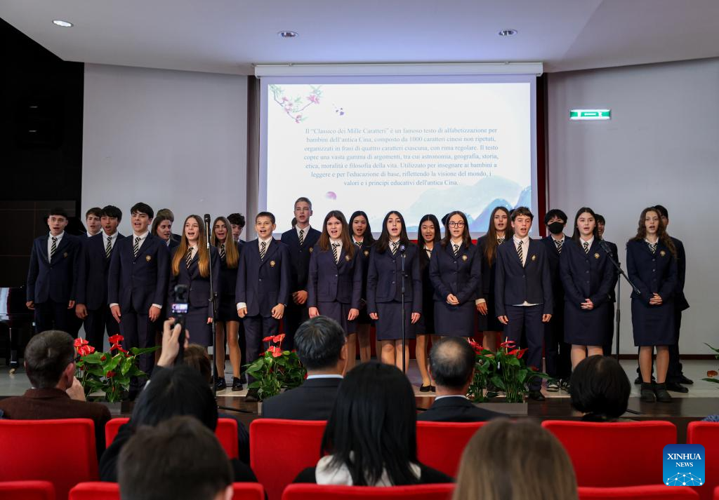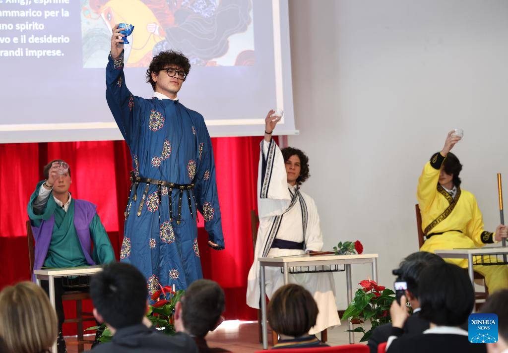 Roma, 8 abr (Xinhua) -- Danças com o tema da Fênix, recitações de clássicos chineses antigos e dublagens da animação chinesa Ne Zha. Na terça-feira, dezenas de estudantes italianos em um internato em Roma demonstraram sua paixão pela língua e cultura chinesas por meio de várias apresentações.