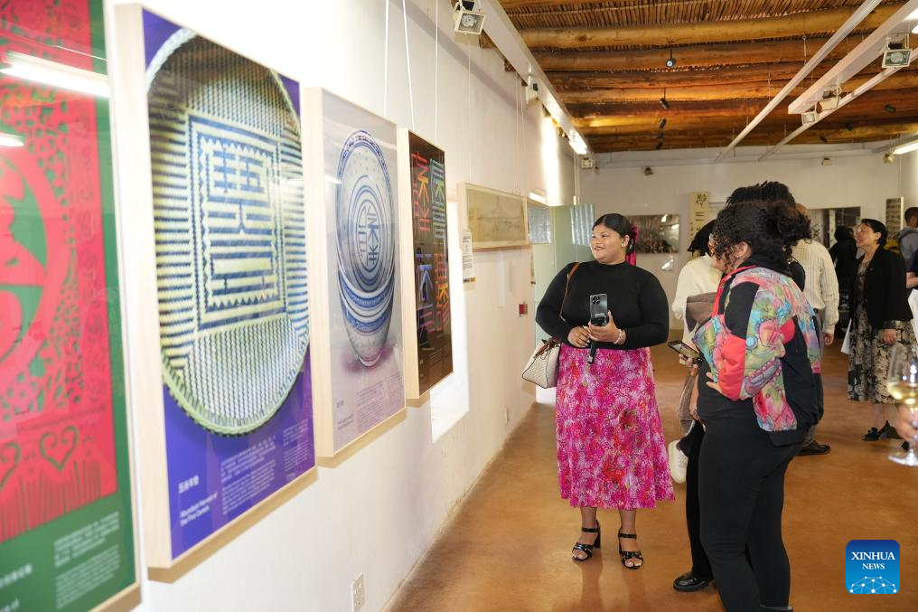 Visitantes na exposição "101 Desejos: A Beleza dos Caracteres Chineses" no evento do Dia Internacional da Língua Chinesa 2025 na Cidade do Cabo, África do Sul, no dia 17 de abril de 2025. Uma animada comemoração do Dia Internacional da Língua Chinesa 2025, sob o tema "Língua Chinesa: Juntos por um Futuro Brilhante", foi realizada na quinta-feira no Centro de Aprendizagem Iziko, na Cidade do Cabo. (Xinhua/Wang Lei)