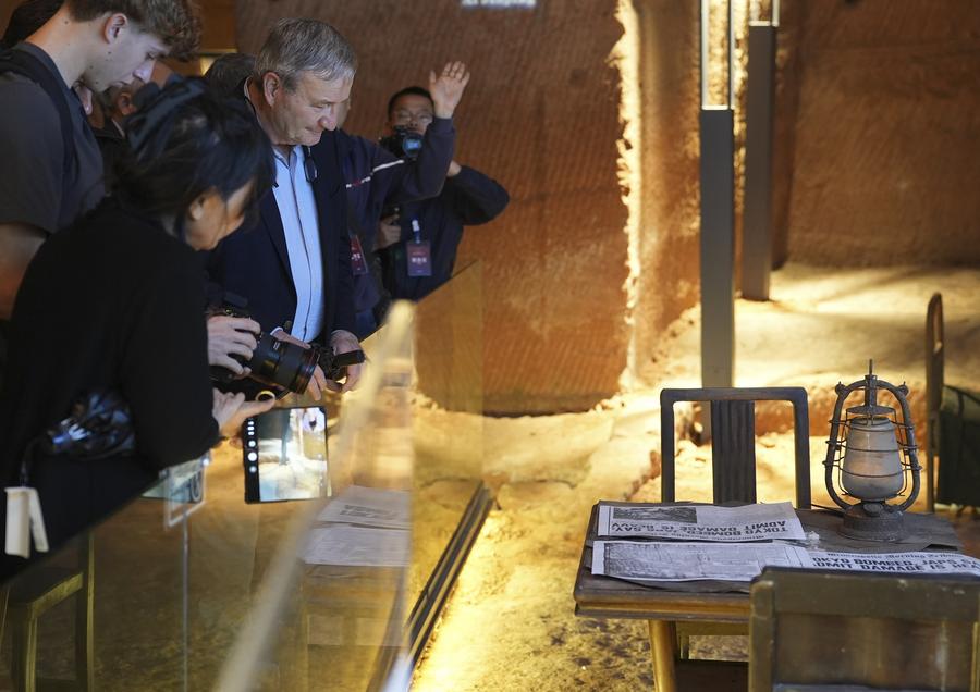 Convidados visitam local onde os aviadores americanos do Ataque Doolittle foram resgatados por moradores locais na cidade de Quzhou, província de Zhejiang, leste da China, no dia 17 de abril de 2025. (Xinhua/Huang Zongzhi)