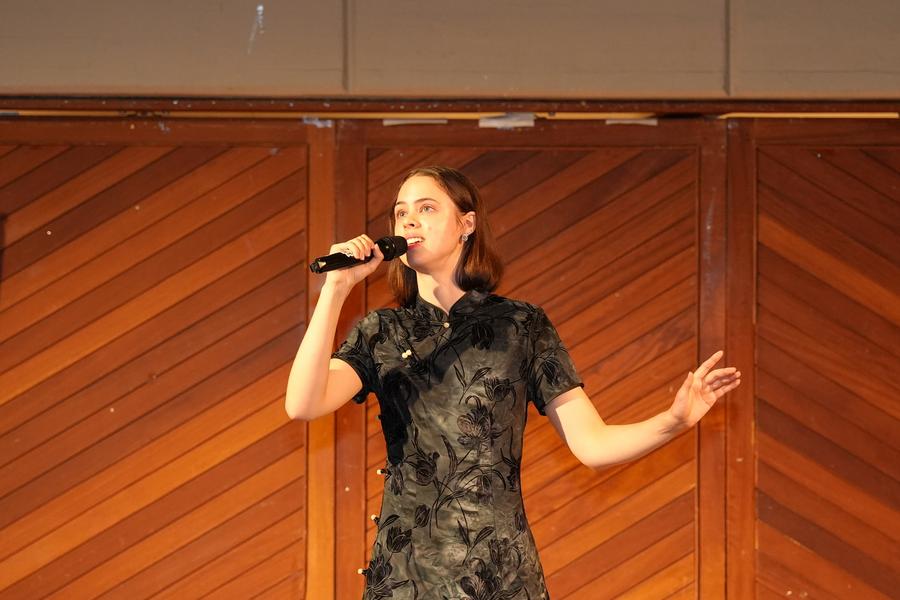 Participante se apresenta na quarta Competição de Canto em Chinês na Cidade do Cabo, África do Sul, no dia 26 de abril de 2025. (Xinhua/Wang Lei)