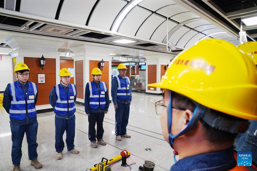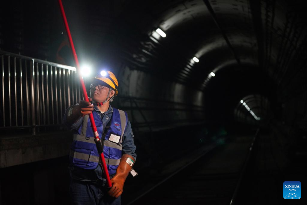Eletricitários patrulham túneis do metrô de Harbin durante a noite para garantir operação estável-Xinhua