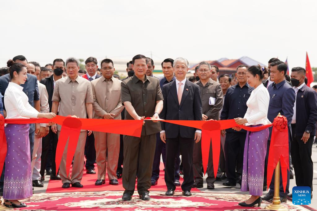 O primeiro-ministro cambojano, Hun Manet, e o embaixador chinês no Camboja, Wang Wenbin, presidiram a cerimônia de inauguração, que contou com a presença de milhares de moradores locais.