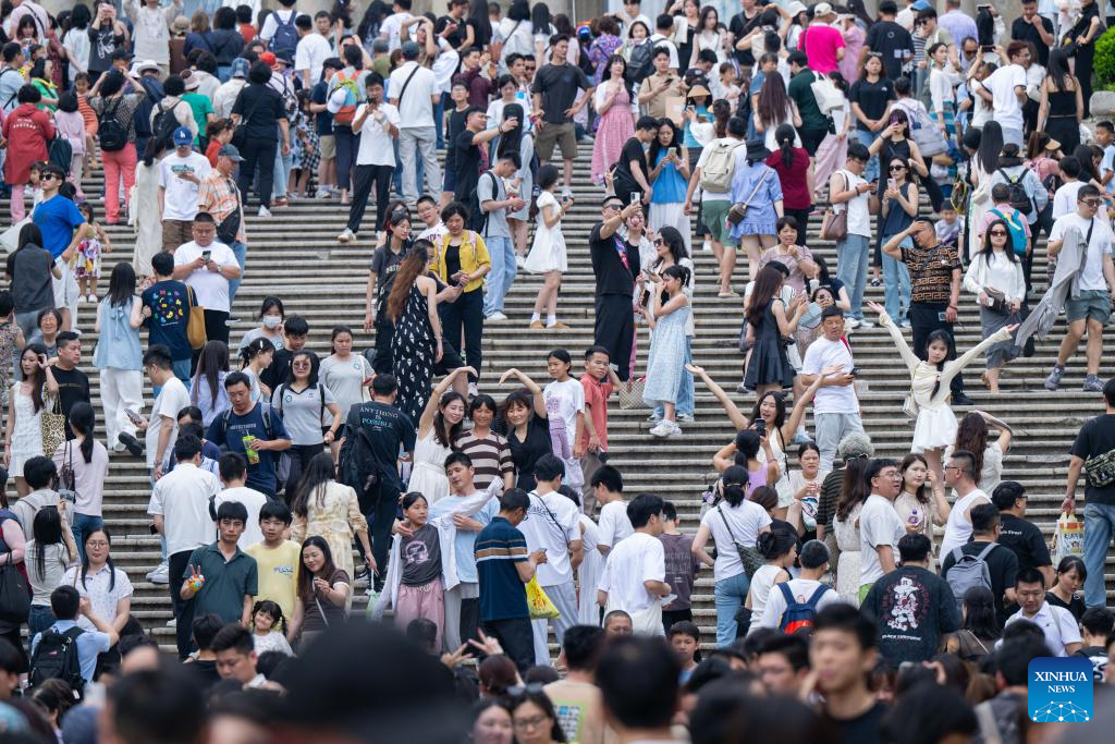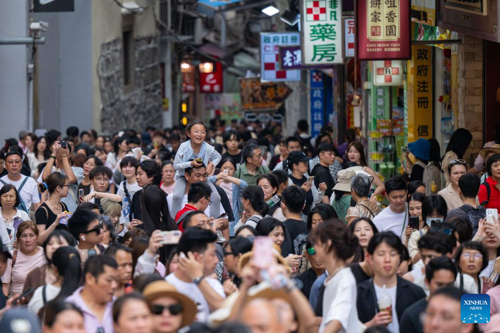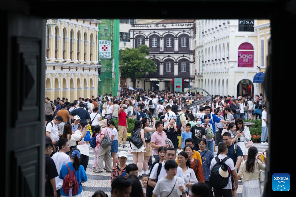 Macau, 4 mai (Xinhua) -- Os três primeiros dias do feriado do Dia do Trabalhador na China registraram um fluxo significativo de visitantes à Região Administrativa Especial de Macau (RAEM), injetando nova vitalidade na indústria do turismo local.