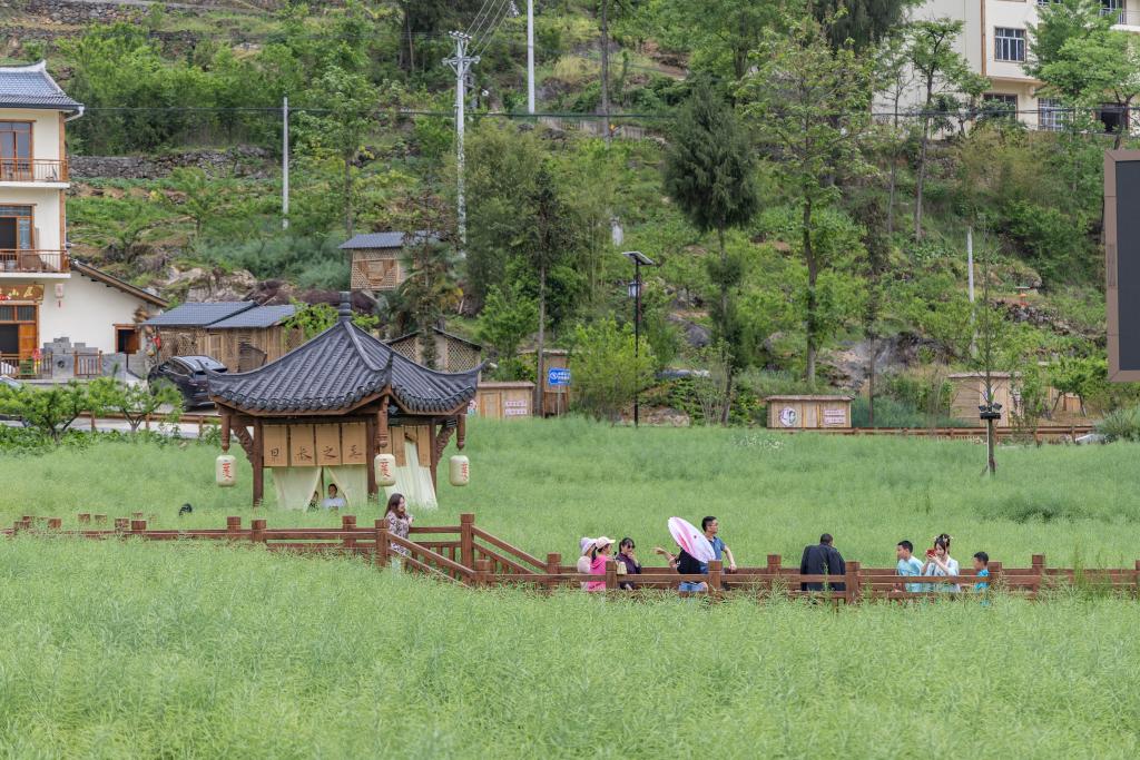 Turistas visitam Vila de Longchi, no Condado de Wuxi, em Chongqing, sudoeste da China, no dia 2 de maio de 2023. A China teve um impulso nas viagens durante o feriado de cinco dias de 1º de maio deste ano. (Xinhua/Huang Wei)