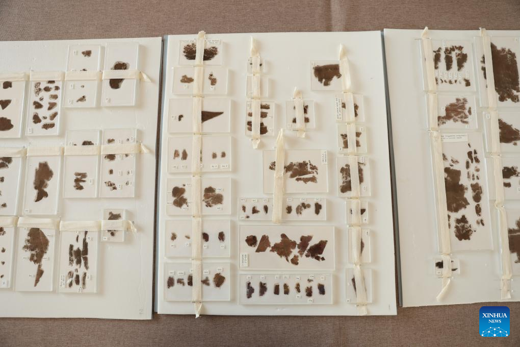 Foto tirada no dia 16 de maio de 2025 mostra antigos manuscritos de seda chineses, do período dos Estados Combatentes, na Embaixada da China em Washington, D.C., Estados Unidos. (Xinhua/Hu Yousong)