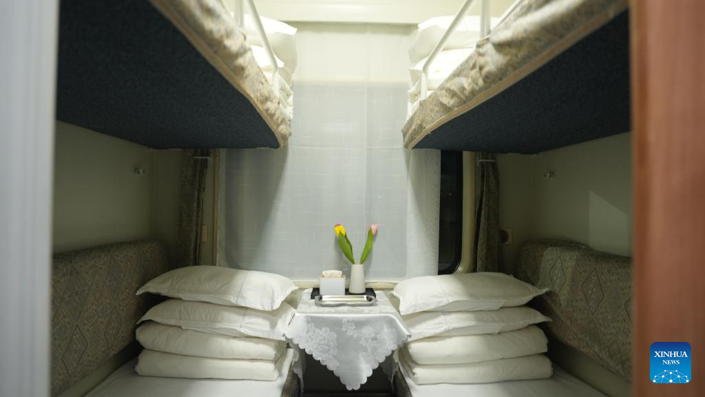 Foto tirada em 26 de maio de 2025 mostra o interior do trem internacional China-Vietnã em Hanói, capital do Vietnã. (Foto por Dang Hong Dung/Xinhua)