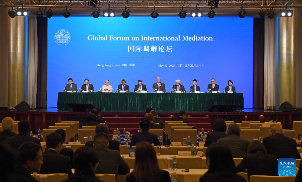 Hong Kong, 31 mai (Xinhua) -- O Fórum Global sobre Mediação Internacional foi realizado em Hong Kong na sexta-feira, após a cerimônia de assinatura da Convenção sobre o Estabelecimento da Organização Internacional para Mediação (IMOed, em inglês).