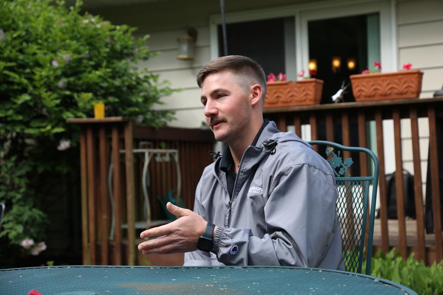 Cale Pellett fala em entrevista à Xinhua em Atlantic, Iowa, Estados Unidos, em 22 de maio de 2025. (Xinhua/Liu Yanan)