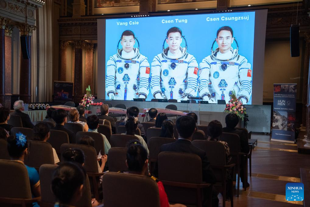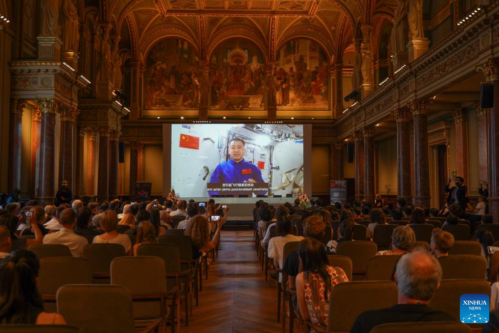Budapeste, 6 jun (Xinhua) -- Mais de 300 estudantes, cientistas e autoridades governamentais se reuniram na sexta-feira na Academia Húngara de Ciências para uma sessão especial de perguntas e respostas sobre ciência espacial com astronautas chineses a bordo da estação espacial Tiangong.