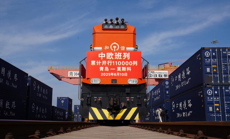 Jinan, 10 jun (Xinhua) -- O 110.000º trem de carga China-Europa partiu de Qingdao, na Província de Shandong, leste da China, na manhã desta terça-feira, estabelecendo um marco no desenvolvimento de alta qualidade do serviço.