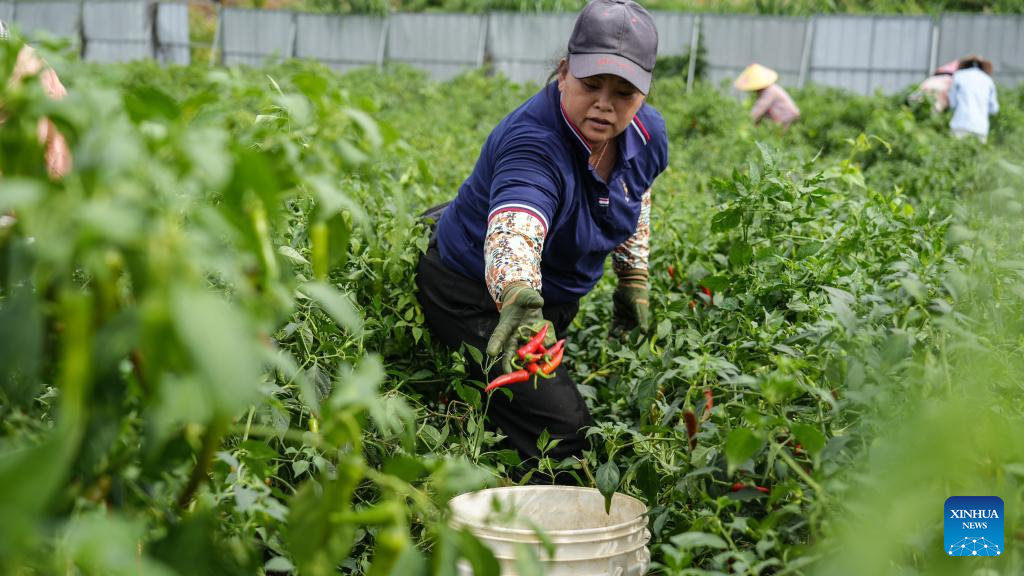 Agricultores colhem pimentas na Aldeia de Youbu, em Guangxi-Xinhua