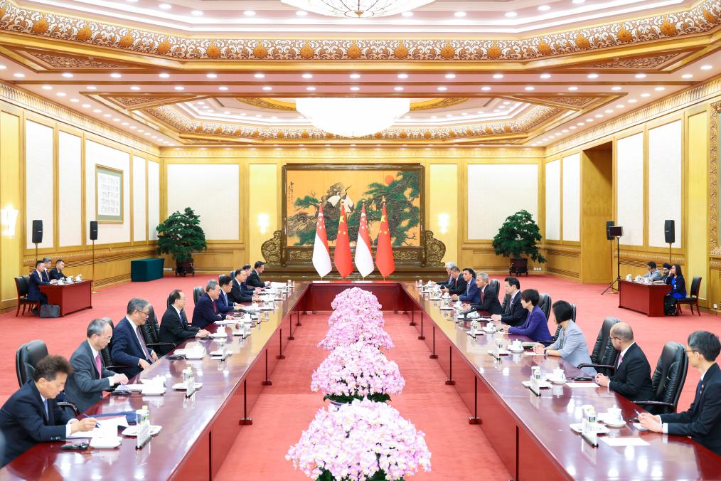 Li afirmou que a China está pronta para aproveitar plenamente o mecanismo de cooperação bilateral com Cingapura, implementar o plano do país de cooperação para a construção conjunta da Iniciativa Cinturão e Rota, além de ampliar e fortalecer projetos de cooperação emblemáticos. A China também está pronta para aumentar a escala do comércio e investimento bidirecional, expandir ativamente a cooperação em mercados terceiros e promover novas iniciativas de cooperação em áreas como economia digital, economia verde, inteligência artificial, cidades inteligentes e energia oceânica.