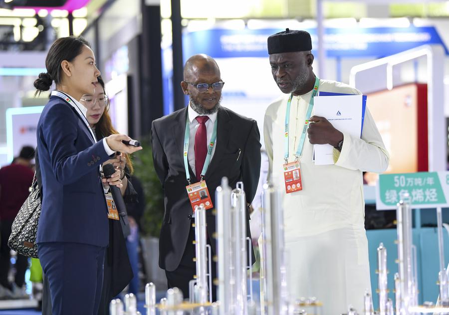 Convidados aprendem sobre um projeto de energia limpa na sexta Expo China-Estados Árabes em Yinchuan, Região Autônoma da Etnia Hui de Ningxia, noroeste da China, em 22 de setembro de 2023. (Xinhua/Feng Kaihua)