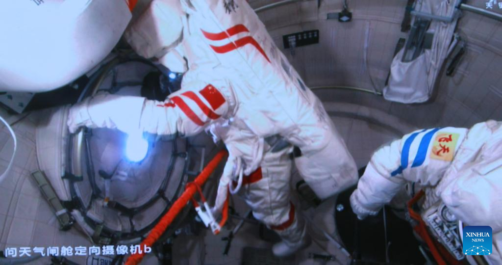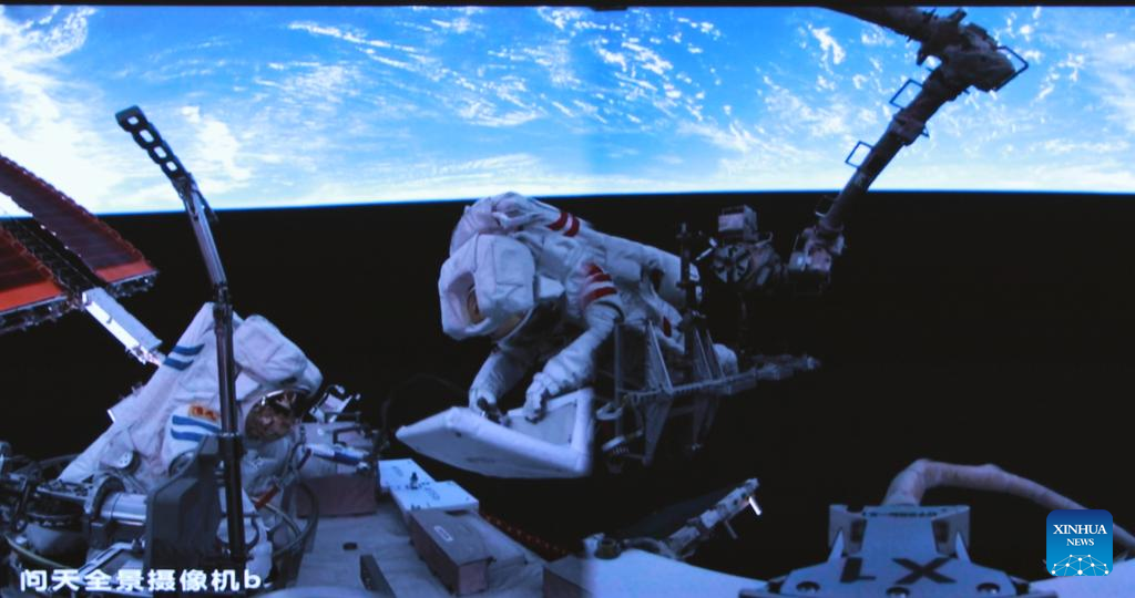 Chen Dong e Chen Zhongrui, encarregados de conduzir operações de caminhada espacial, concluíram a instalação de um dispositivo de proteção contra detritos e a inspeção e manutenção de equipamentos externos, de acordo com a CMSA.