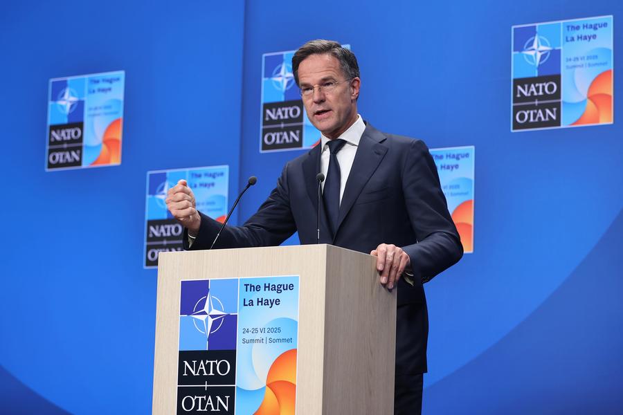 Secretário-geral da Organização do Tratado do Atlântico Norte (OTAN), Mark Rutte, participa de uma coletiva de imprensa durante a cúpula da OTAN em Haia, Holanda, em 25 de junho de 2025. (Xinhua/Zhao Dingzhe)