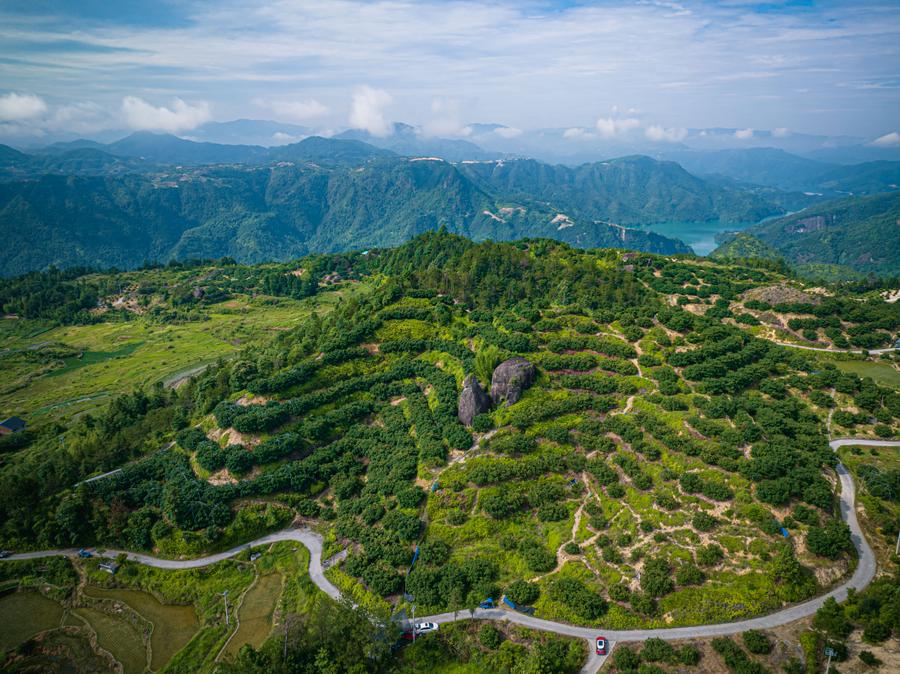 Foto aérea de drone mostra pomares de morangos chineses no Condado de Wencheng, província de Zhejiang, leste da China, no dia 23 de junho de 2025. (Xinhua/Jiang Han)