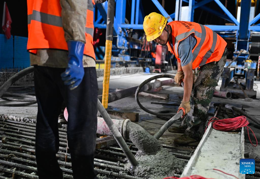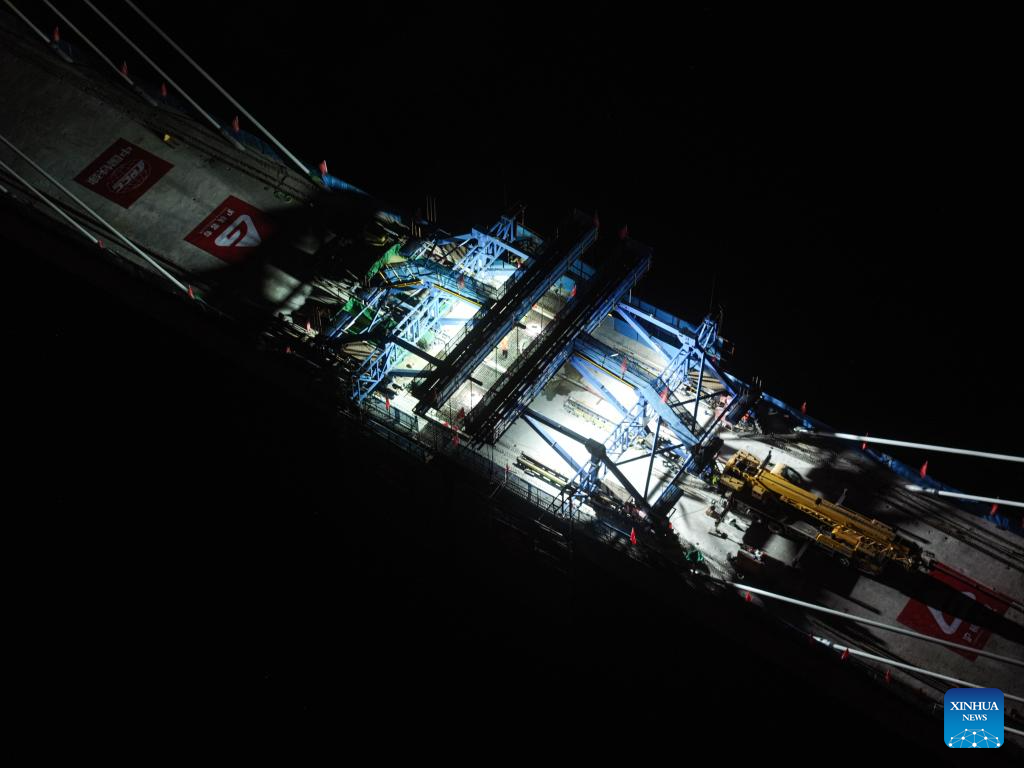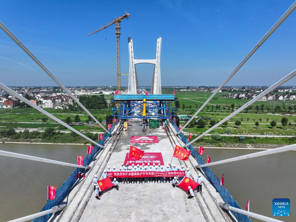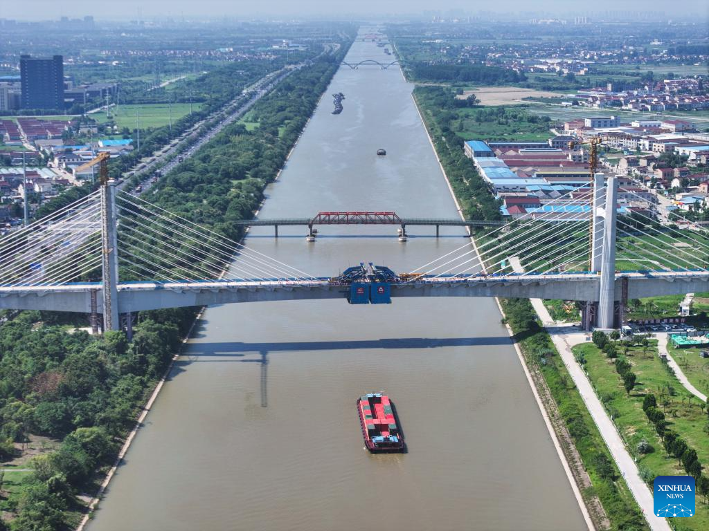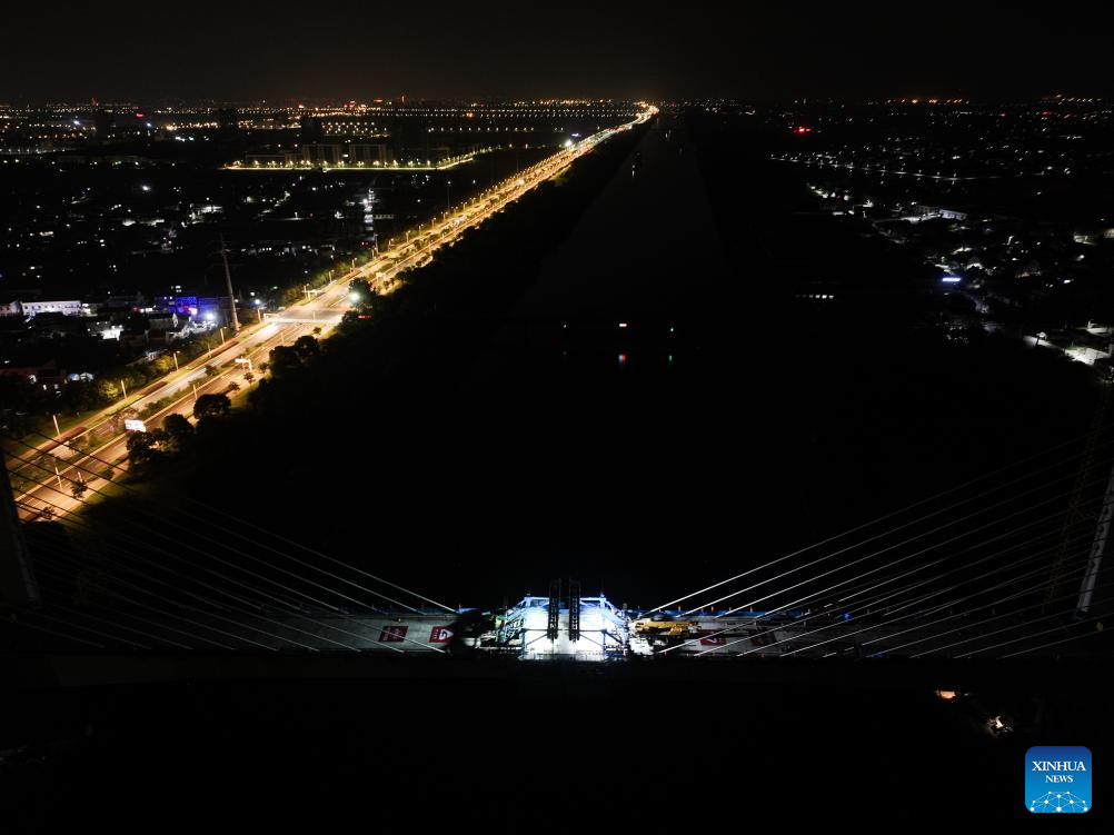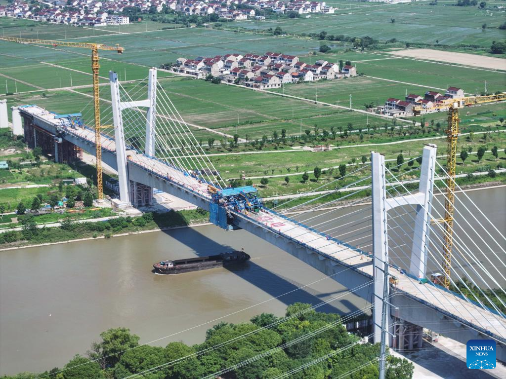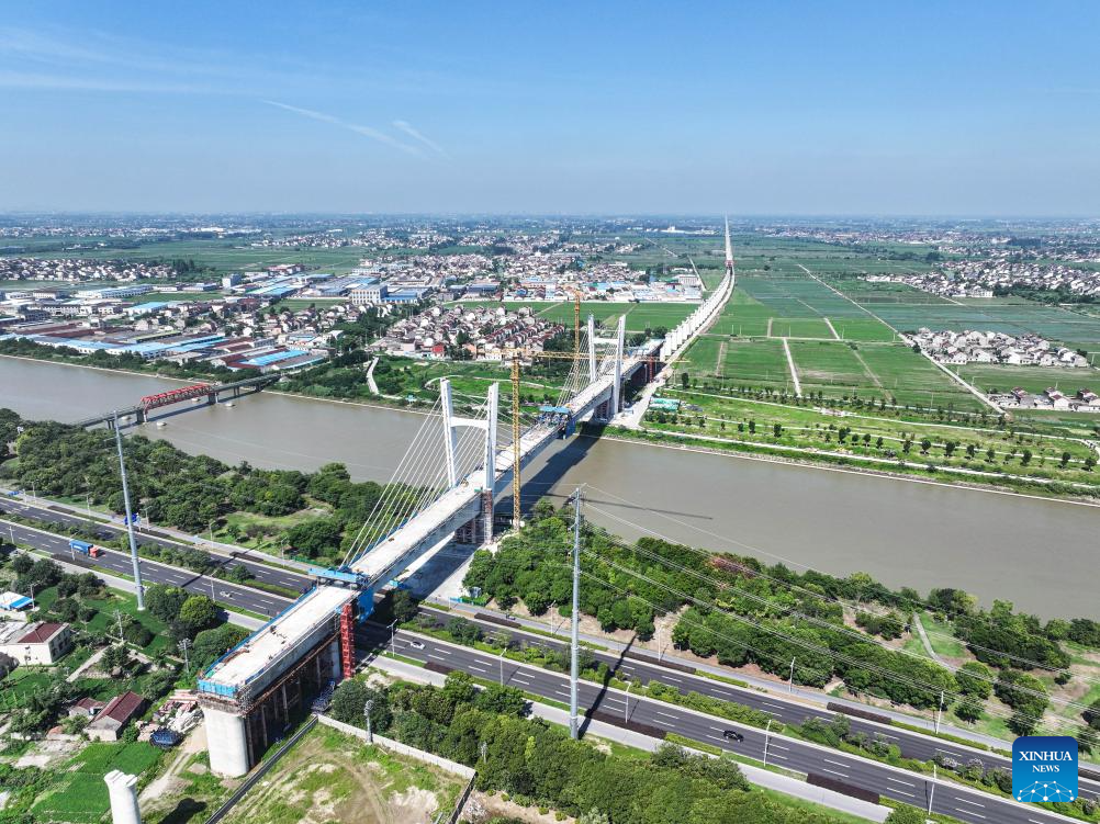 Dois lados de ponte estaiada sobre o Rio Yinjiang na Província de Jiangsu se encontram-Xinhua