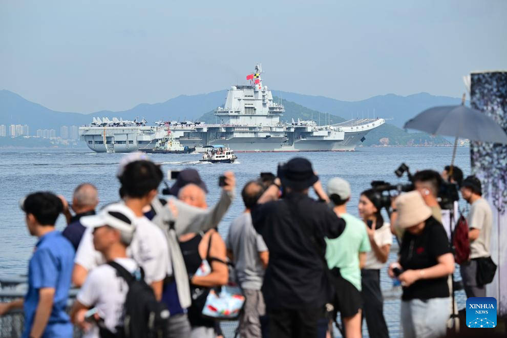 Hong Kong, 3 jul (Xinhua) -- Uma frota da Marinha do Exército de Libertação Popular Chinês (ELP) liderada pelo porta-aviões Shandong chegou à Região Administrativa Especial de Hong Kong (RAEHK) na manhã desta quinta-feira, dando início a uma visita de cinco dias.