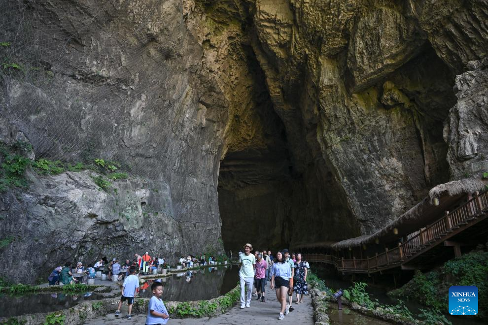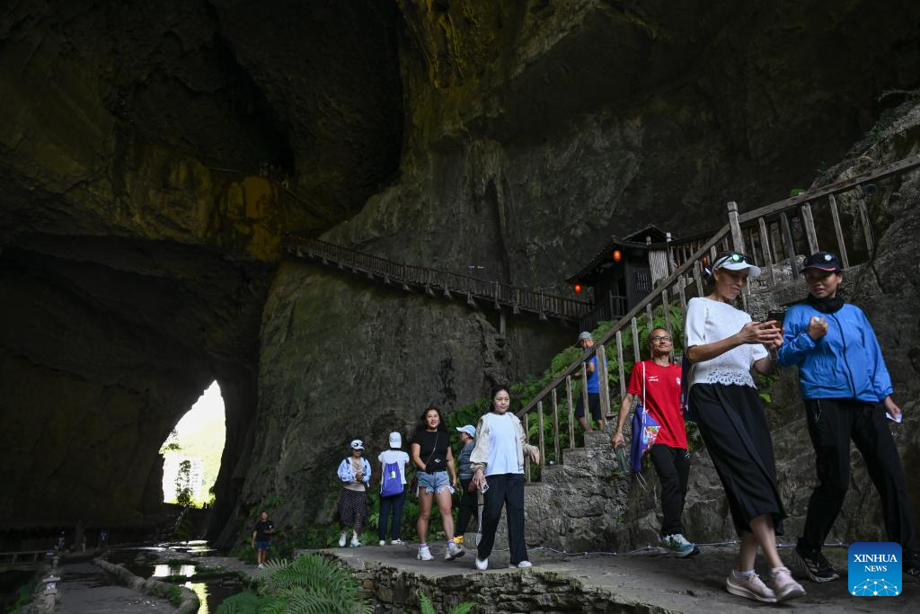 Ponto cênico de Taohuayuan em Chongqing atrai turistas pelas suas paisagens fenomenais-Xinhua