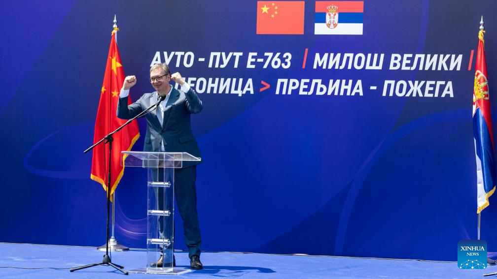 Lucani, Sérvia, 5 jul (Xinhua) -- O presidente sérvio, Aleksandar Vucic, inaugurou no sábado o trecho final da rodovia E-763 "Milos Veliki", entre Pakovrace e Pozega, completando todo o trecho Preljina-Pozega, com 30,9 km de extensão.