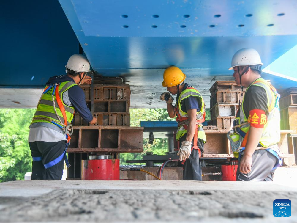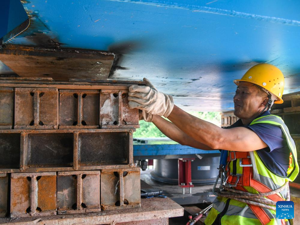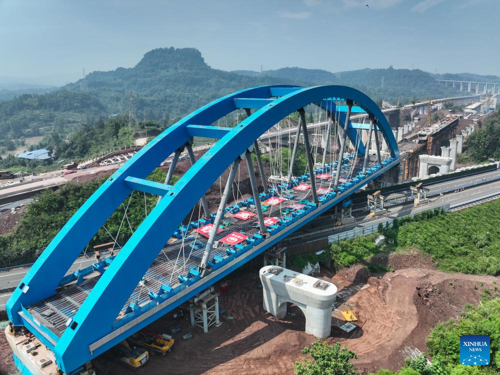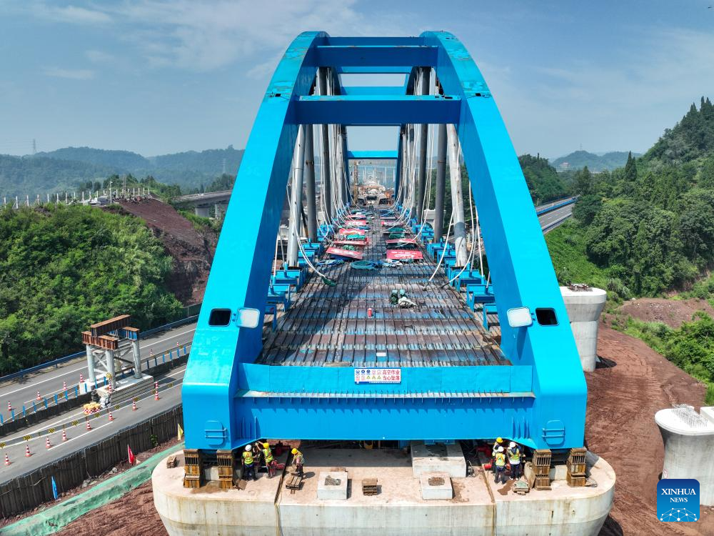 Instalado vão central de ponte da ferrovia de alta velocidade Xi'an-Chongqing em Dazhou, na Província de Sichuan-Xinhua
