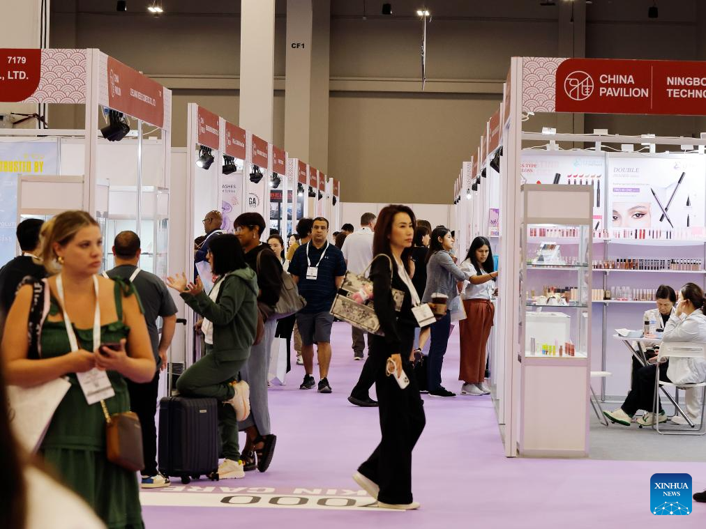 O evento de três dias no Centro de Convenções Mandalay Bay, em Las Vegas, reuniu participantes do mundo todo. Por trás das brilhantes inovações em cuidados com a pele e em tecnologias cosméticas, as incertezas da política comercial dominaram as discussões entre os líderes do setor. (Foto por Qiu Chen/Xinhua)