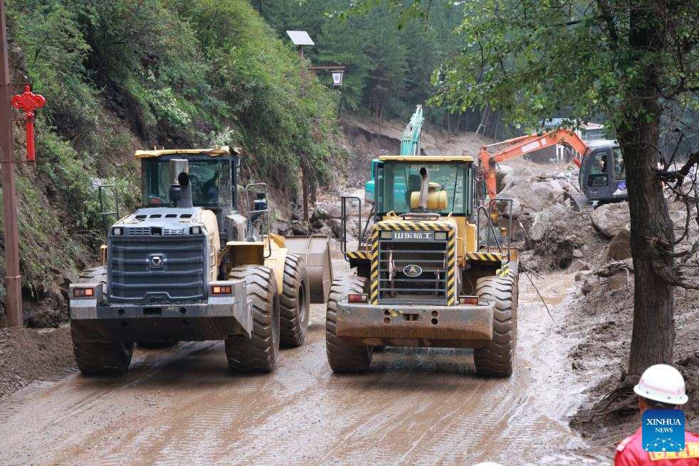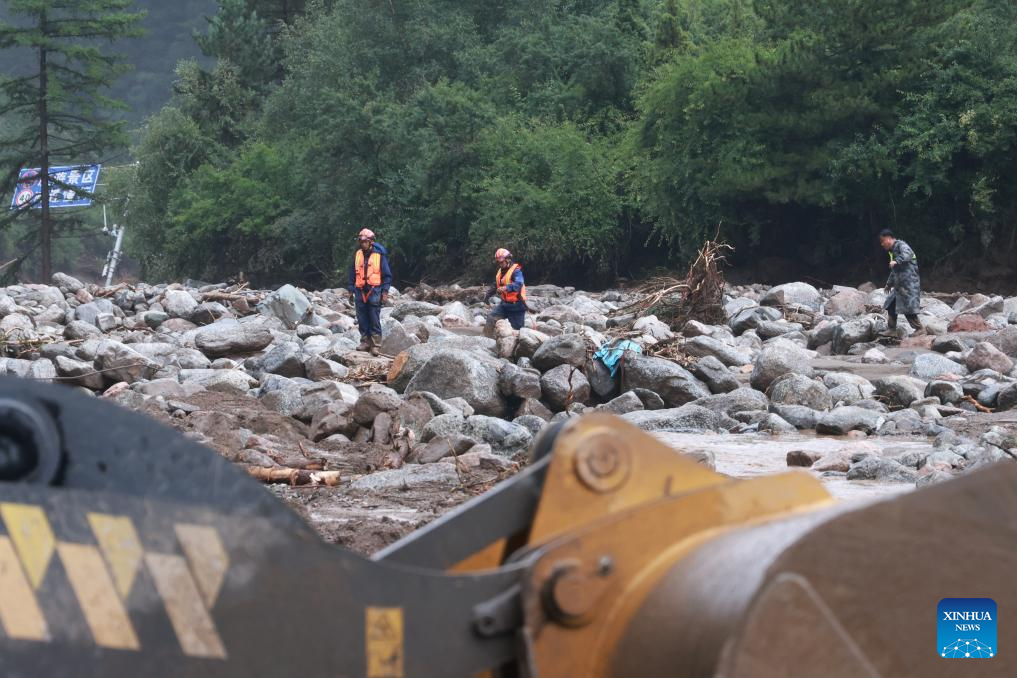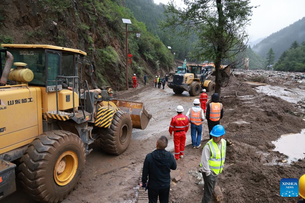 Por volta das 14h de sexta-feira, repórteres da Xinhua testemunharam a água da enchente misturada com árvores arrancadas bloqueando estradas próximas à Escola Primária Xinglong, na vila de Chengguan, com acúmulo de lama superior a 30 centímetros em alguns trechos. Ao longo da estrada, muitos veículos estavam danificados, enquanto móveis dos andares térreos de algumas casas haviam sido arrastados até as portas das mesmas.