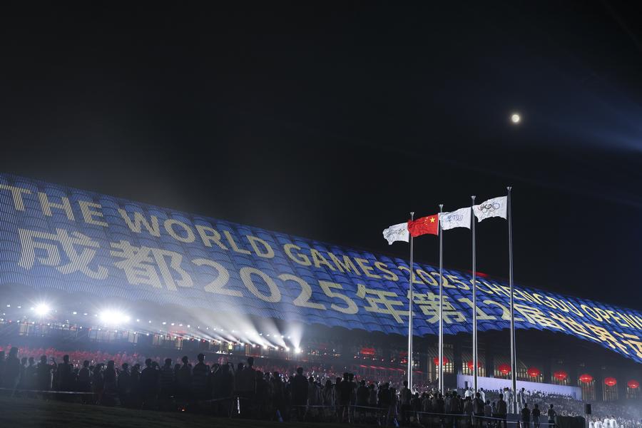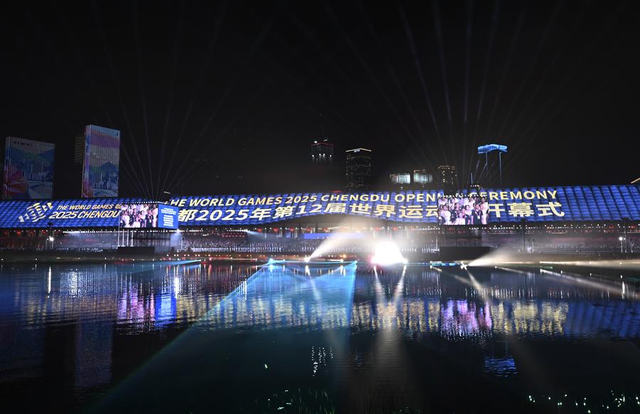 Chengdu, 7 ago (Xinhua) -- A cerimônia de abertura dos Jogos Mundiais 2025 foi realizada em Chengdu, na Província de Sichuan, no sudoeste da China, em 7 de agosto de 2025.