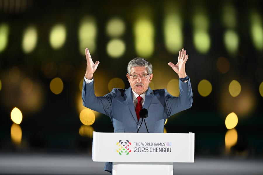Fogos de artifício são vistos durante a cerimônia de abertura dos Jogos Mundiais 2025 em Chengdu, na Província de Sichuan, no sudoeste da China, em 7 de agosto de 2025. (Xinhua/Liu Kun)Fogos de artifício são vistos durante a cerimônia de abertura dos Jogos Mundiais 2025 em Chengdu, na Província de Sichuan, no sudoeste da China, em 7 de agosto de 2025. (Xinhua/Chen Yichen)Os portadores da tocha Ding Junhui (E) e Dong Dong aplaudem durante a cerimônia de abertura dos Jogos Mundiais 2025 em Chengdu, na Província de Sichuan, no sudoeste da China, em 7 de agosto de 2025. (Xinhua/Chen Zhenhai)O caldeirão é aceso durante a cerimônia de abertura dos Jogos Mundiais 2025 em Chengdu, na Província de Sichuan, no sudoeste da China, em 7 de agosto de 2025. (Xinhua/Sun Fanyue)Fogos de artifício são vistos durante a cerimônia de abertura dos Jogos Mundiais 2025 em Chengdu, na Província de Sichuan, no sudoeste da China, em 7 de agosto de 2025. (Xinhua/Wang Xi)A bandeira do Comitê Olímpico Internacional, a bandeira da Associação Internacional dos Jogos Mundiais, a bandeira nacional chinesa e a bandeira do Comitê Organizador dos Jogos Mundiais de Chengdu 2025 são vistas durante a cerimônia de abertura dos Jogos Mundiais 2025 em Chengdu, na Província de Sichuan, no sudoeste da China, em 7 de agosto de 2025. (Xinhua/Chen Bin)Membros da delegação da China desfilam durante a cerimônia de abertura dos Jogos Mundiais 2025 em Chengdu, na Província de Sichuan, no sudoeste da China, em 7 de agosto de 2025. (Xinhua/Jiang Kehong)Fogos de artifício são vistos durante a cerimônia de abertura dos Jogos Mundiais 2025 em Chengdu, na Província de Sichuan, no sudoeste da China, em 7 de agosto de 2025. (Xinhua/Chen Yichen)Fogos de artifício são vistos durante a cerimônia de abertura dos Jogos Mundiais 2025 em Chengdu, na Província de Sichuan, no sudoeste da China, em 7 de agosto de 2025. (Xinhua/Zhang Bowen)O presidente da Associação Internacional dos Jogos Mundiais (IWGA), José Perurena López, profere um discurso durante a cerimônia de abertura dos Jogos Mundiais 2025 em Chengdu, na Província de Sichuan, no sudoeste da China, em 7 de agosto de 2025. (Xinhua/Chen Zhenhai)Foto tirada em 7 de agosto de 2025 mostra a vista geral da cerimônia de abertura dos Jogos Mundiais 2025 em Chengdu, na Província de Sichuan, no sudoeste da China. (Xinhua/Sun Fanyue)Membros da delegação da China desfilam durante a cerimônia de abertura dos Jogos Mundiais 2025 em Chengdu, na Província de Sichuan, no sudoeste da China, em 7 de agosto de 2025. (Xinhua/Chen Bin)Dançarinos se apresentam durante a cerimônia de abertura dos Jogos Mundiais 2025 em Chengdu, na Província de Sichuan, no sudoeste da China, em 7 de agosto de 2025. (Xinhua/Liang Xu)Dançarinos se apresentam durante a cerimônia de abertura dos Jogos Mundiais 2025 em Chengdu, na Província de Sichuan, no sudoeste da China, em 7 de agosto de 2025. (Xinhua/Liang Xu)Dançarinos se apresentam durante a cerimônia de abertura dos Jogos Mundiais 2025 em Chengdu, na Província de Sichuan, no sudoeste da China, em 7 de agosto de 2025. (Xinhua/Liang Xu)"Shubao", um dos mascotes, é visto durante a cerimônia de abertura dos Jogos Mundiais 2025 em Chengdu, na Província de Sichuan, no sudoeste da China, em 7 de agosto de 2025. (Xinhua/Liu Kun)Pessoas tiram fotos de um relógio de contagem regressiva na Praça Tianfu, quando a cerimônia de abertura dos Jogos Mundiais 2025 iniciou em Chengdu, na Província de Sichuan, no sudoeste da China, em 7 de agosto de 2025. (Xinhua/Xie Jianfei)Foto tirada em 7 de agosto de 2025 mostra a vista noturna das torres gêmeas na área da Cidade Financeira de Chengdu no dia da cerimônia de abertura dos Jogos Mundiais 2025 em Chengdu, na Província de Sichuan, no sudoeste da China. (Xinhua/Yang Wenbin)