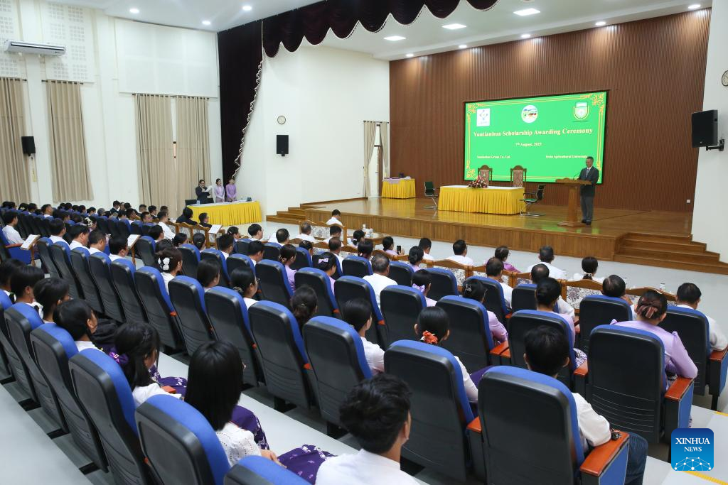 Rangum, 8 ago (Xinhua) -- A sexta cerimônia de premiação da Bolsa de Estudos Yuntianhua foi realizada na Universidade Agrícola Yezin em Nay Pyi Taw, Mianmar, na quinta-feira. O Yuntianhua Group Co., Ltd., um grupo industrial chinês abrangente, concedeu bolsas a 104 estudantes.