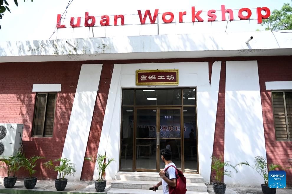 Islamabad, 11 ago (Xinhua) -- Na Oficina Luban, na cidade de Lahore, no leste do Paquistão, a paixão de Mughees Ahmed, 20 anos, por máquinas e sistemas era nítida enquanto ele passava pelos equipamentos, explicando com empolgação as operações e manuseio de cada um.