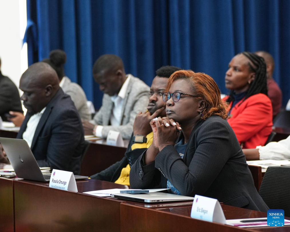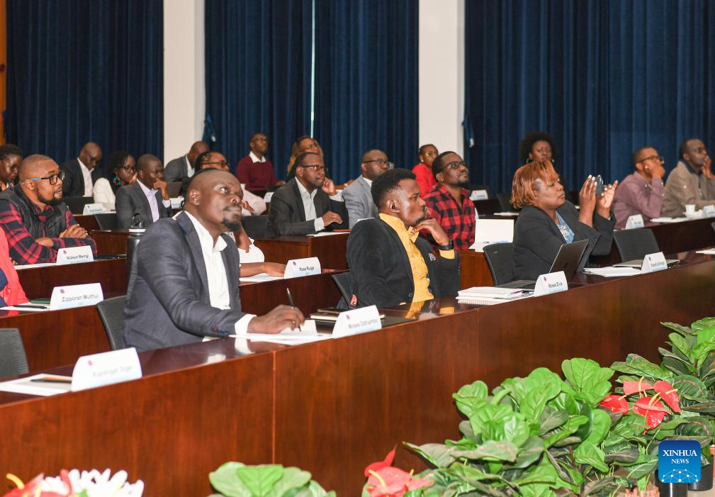 Quase 100 participantes, incluindo editores e repórteres de mais de 10 veículos de comunicação no Quênia e em toda a África, participaram do treinamento, que foi realizado em formato híbrido. (Xinhua/Li Yahui)