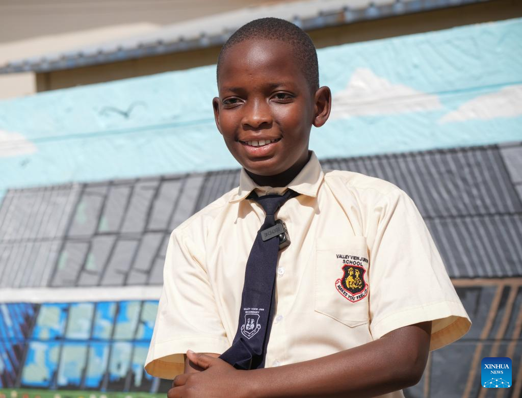 Euticus Bruce, estudante do sétimo ano de Mathare, fala durante entrevista em Nairóbi, Quênia, em 27 de agosto de 2025. JUNTO COM: Destaque: Crianças quenianas dão vida à história da ferrovia construída pela China através de murais (Xinhua/Li Yahui)
