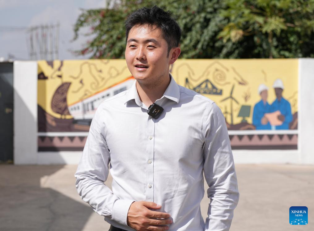 Liu Yimenghan, cofundador da instituição de caridade local Associação de Serviços de Construção de Sonhos (DBSA, na sigla em inglês), durante entrevista em Nairóbi, Quênia, em 27 de agosto de 2025. JUNTO COM: Destaque: Crianças quenianas dão vida à história da ferrovia construída pela China através de murais (Xinhua/Li Yahui)