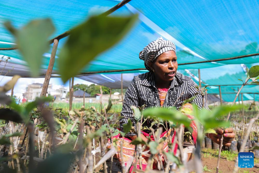 Uma mulher trabalha em um centro de demonstração agrícola urbana em Adis Abeba, capital da Etiópia, em 29 de agosto de 2025. A China e a Comissão da União Africana (UA) renovaram sua parceria na sexta-feira para promover tecnologia agrícola moderna e sistemas agroalimentares resilientes na África. (Xinhua/Michael Tewelde)