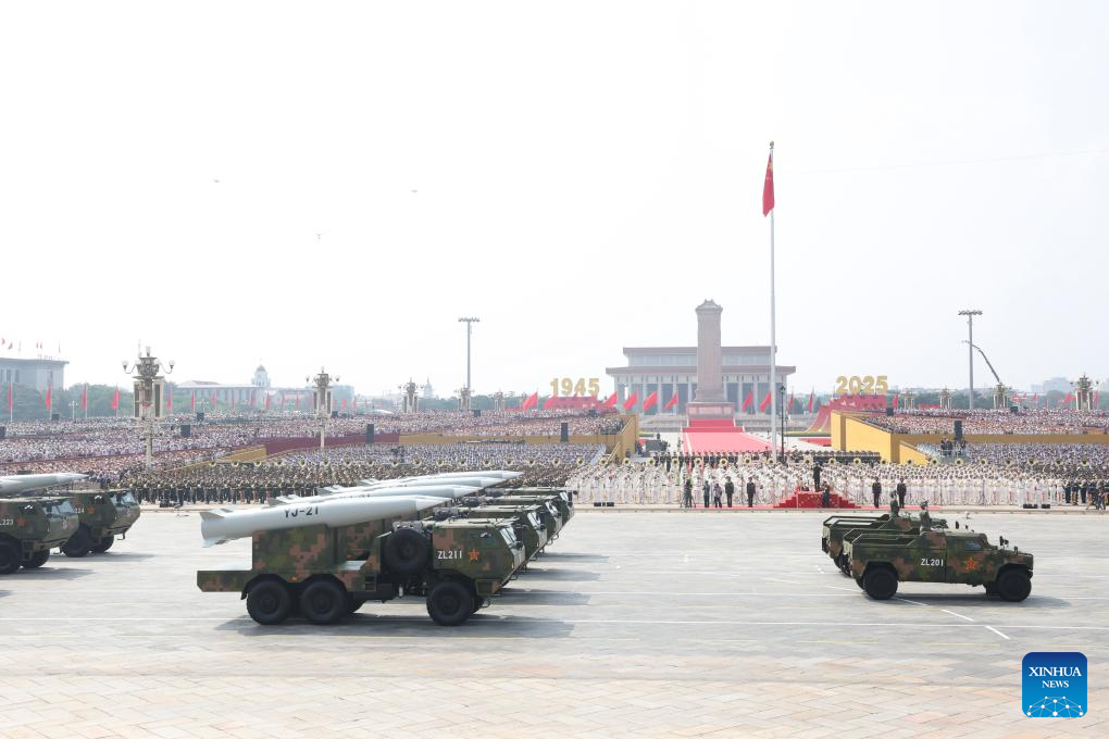 Beijing, 3 set (Xinhua) -- Os mísseis hipersônicos da China com capacidade de combate em todas as condições climáticas -- YingJi-21, DongFeng-17 e DongFeng-26D -- passaram pela Praça Tian'anmen no desfile militar do Dia da Vitória, nesta quarta-feira.