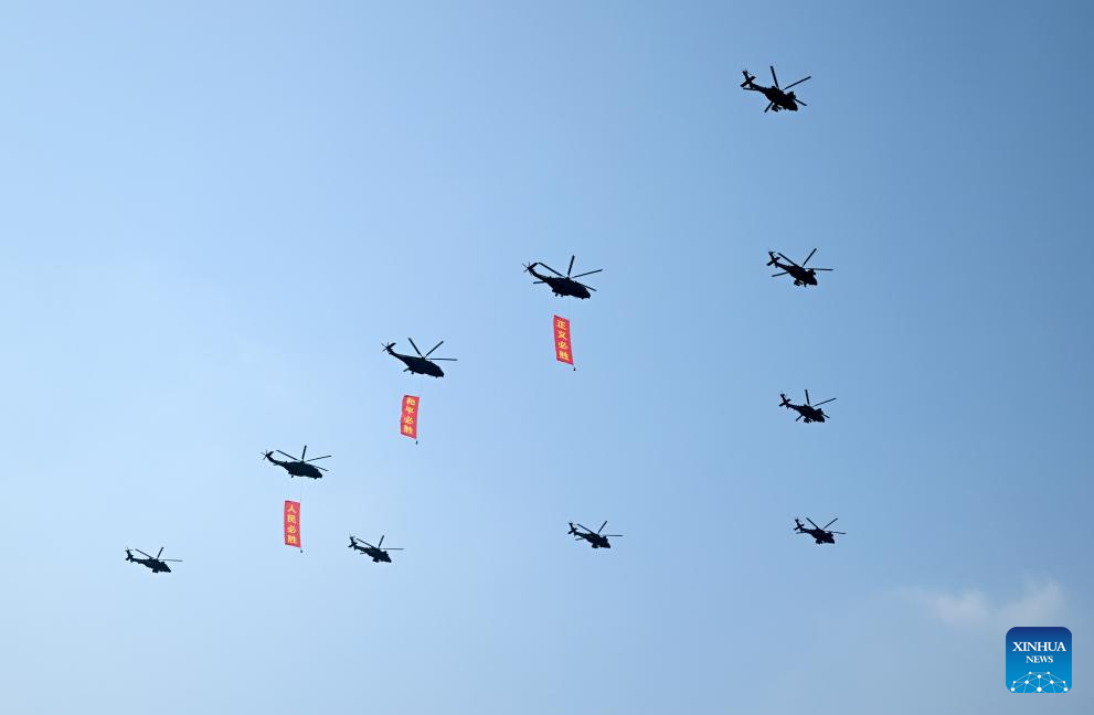 O desfile militar de 70 minutos demonstrou a transformação das forças armadas de um exército de "painço e espingarda" para um exército moderno. Contou com a presença de mais de 10 mil soldados, mais de 100 aeronaves e centenas de armamentos terrestres, organizados sob um sistema de comando em tempo de guerra.