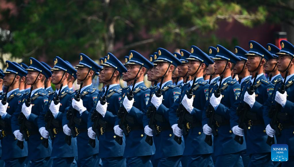 Beijing, 3 set(Xinhua) -- A formação da Força Aérea do Exército de Libertação Popular (ELP) da China passou pela Praça Tian'anmen no desfile militar do Dia da Vitória, nesta quarta-feira.