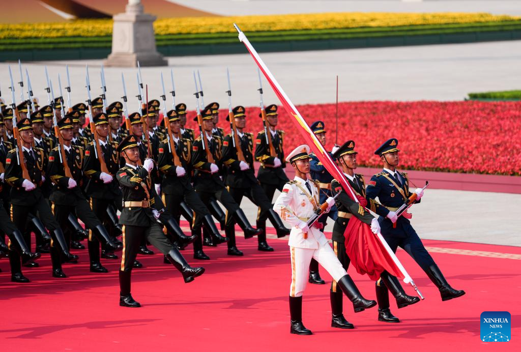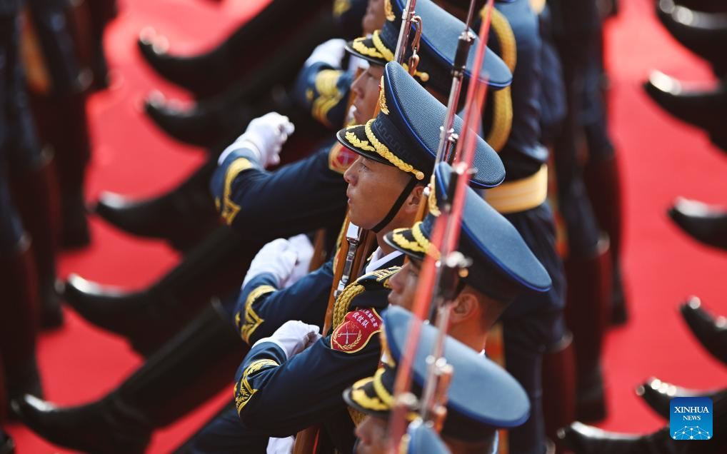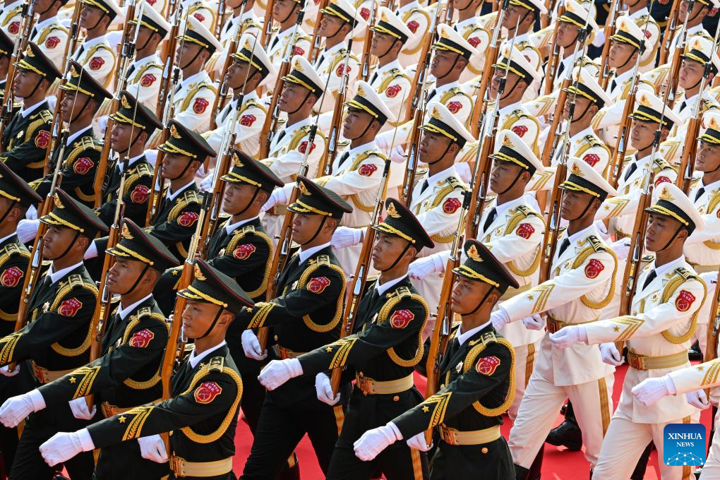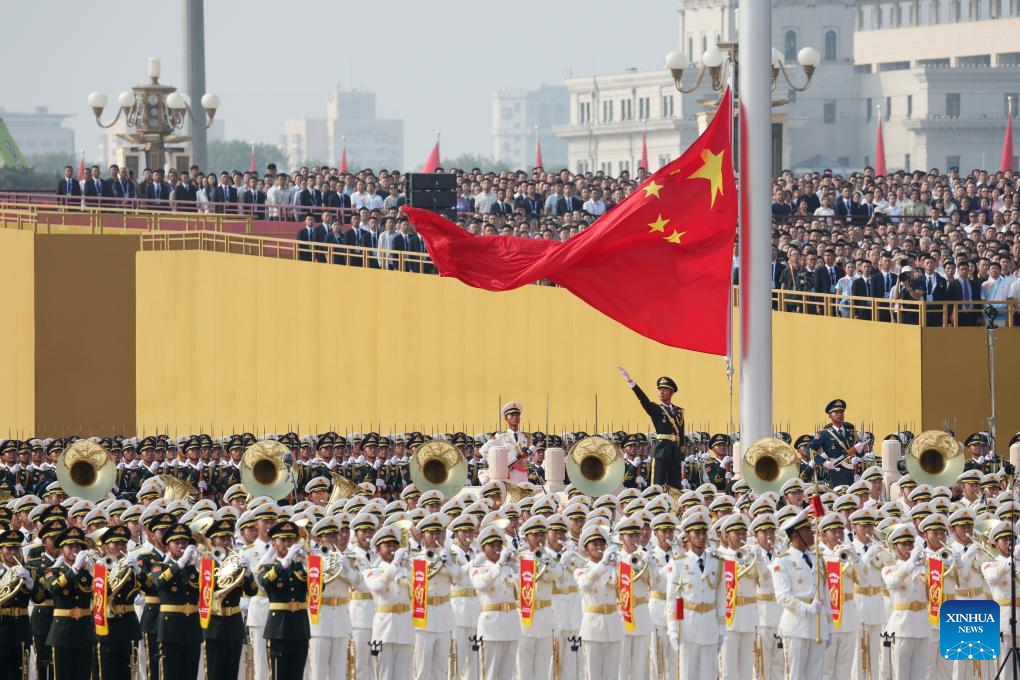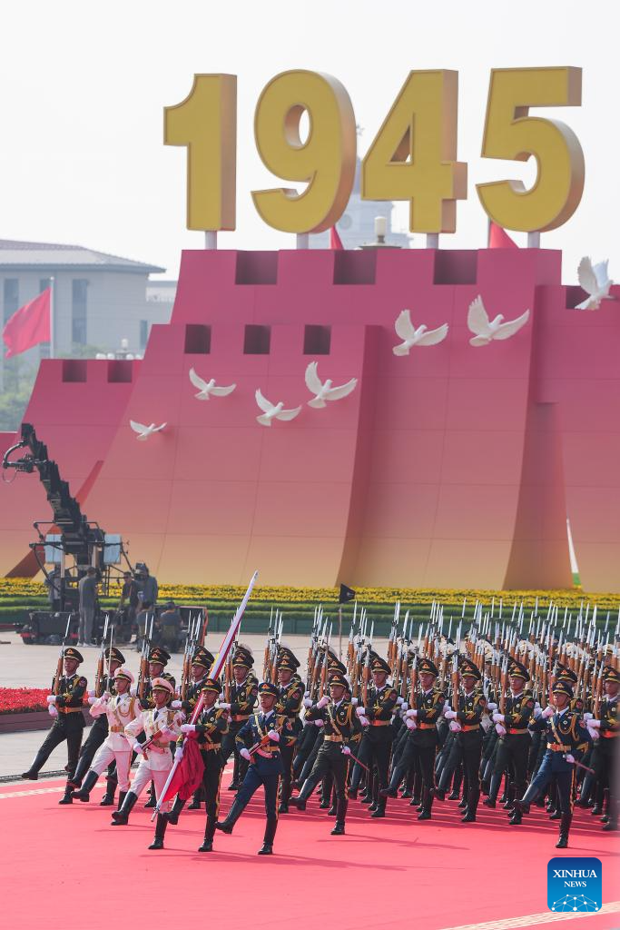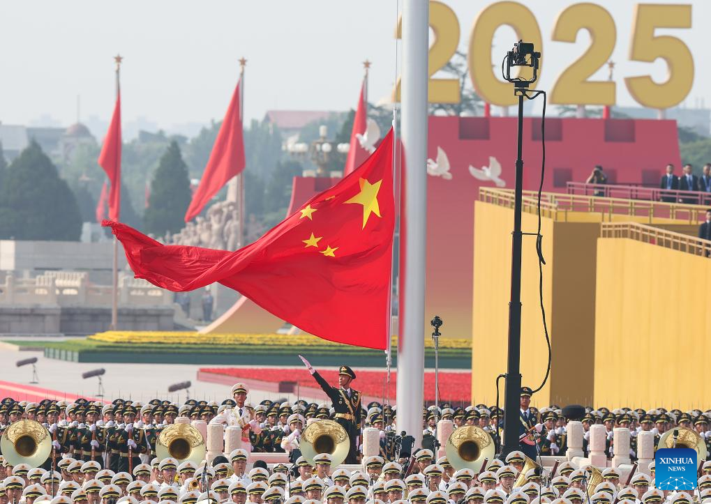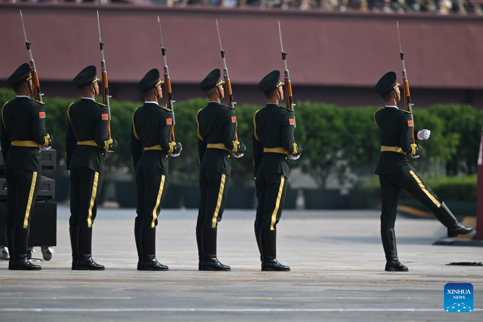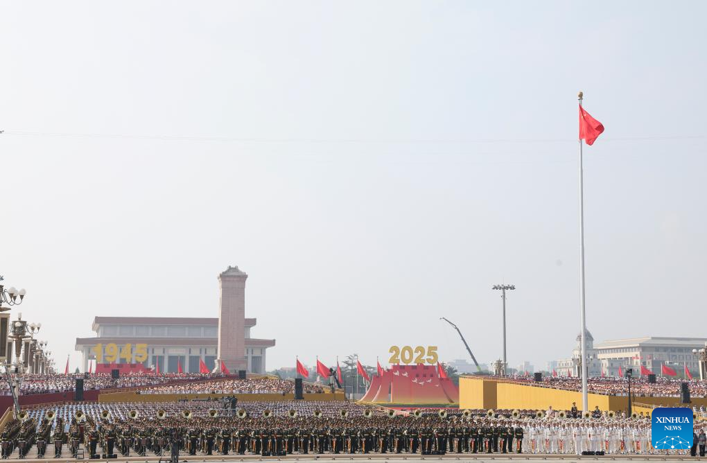 Beijing, 3 set (Xinhua) -- Uma grande reunião comemorativa teve início na manhã desta quarta-feira, na Praça Tian'anmen, em Beijing, para marcar o 80º aniversário da vitória na Guerra de Resistência do Povo Chinês contra a Agressão Japonesa e na Guerra Antifascista Mundial.